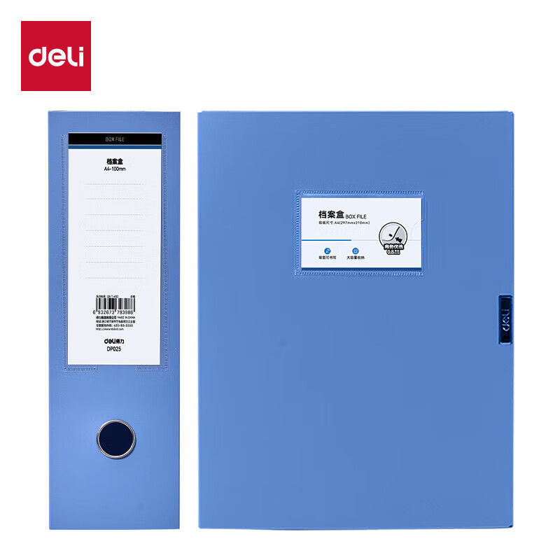 得力/deli DP025 档案盒 A4加厚型档案盒 办公财务文件资料票据试卷收纳文件盒 灰蓝色 【侧宽100mm】单只装