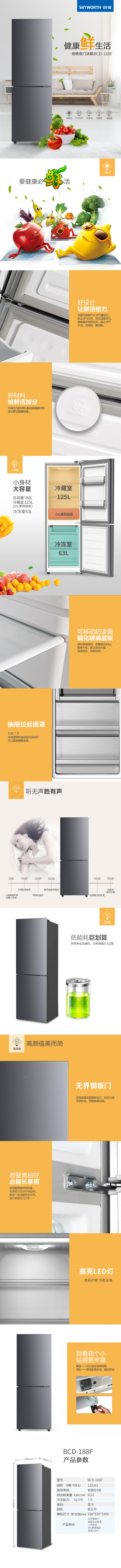 创维/Skyworth BCD-188F 电冰箱 双门大容量小型冰箱 抽屉拉丝面罩高亮LED灯 BCD-188F_星云灰