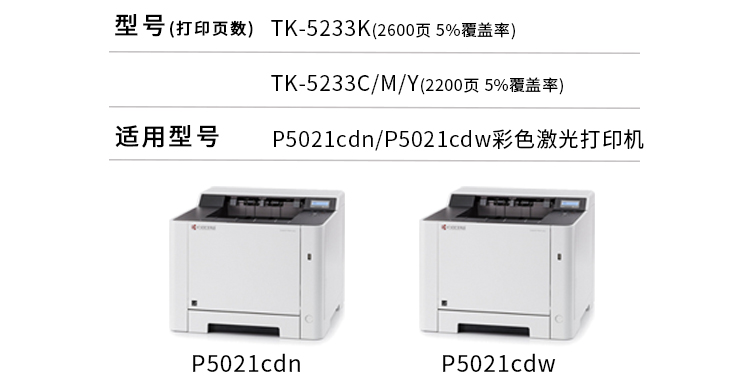 适用机型  :   P5021cdn/P5021cdw TK-5233