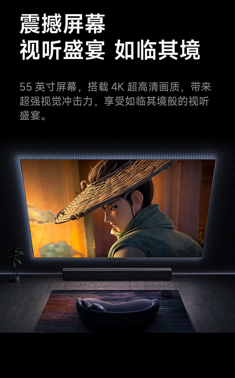 小米/MI A55 普通电视设备(电视机) 电视55英寸Redmi A55智能远场语音液晶4K平板电视机4k高清可移动电视机55寸 55英寸 电视+挂架+安装