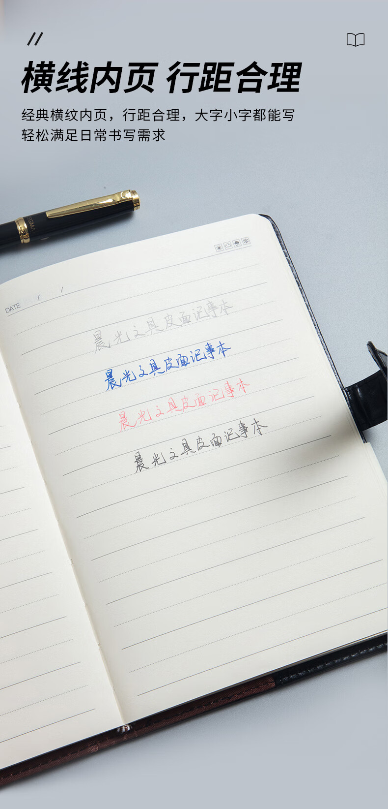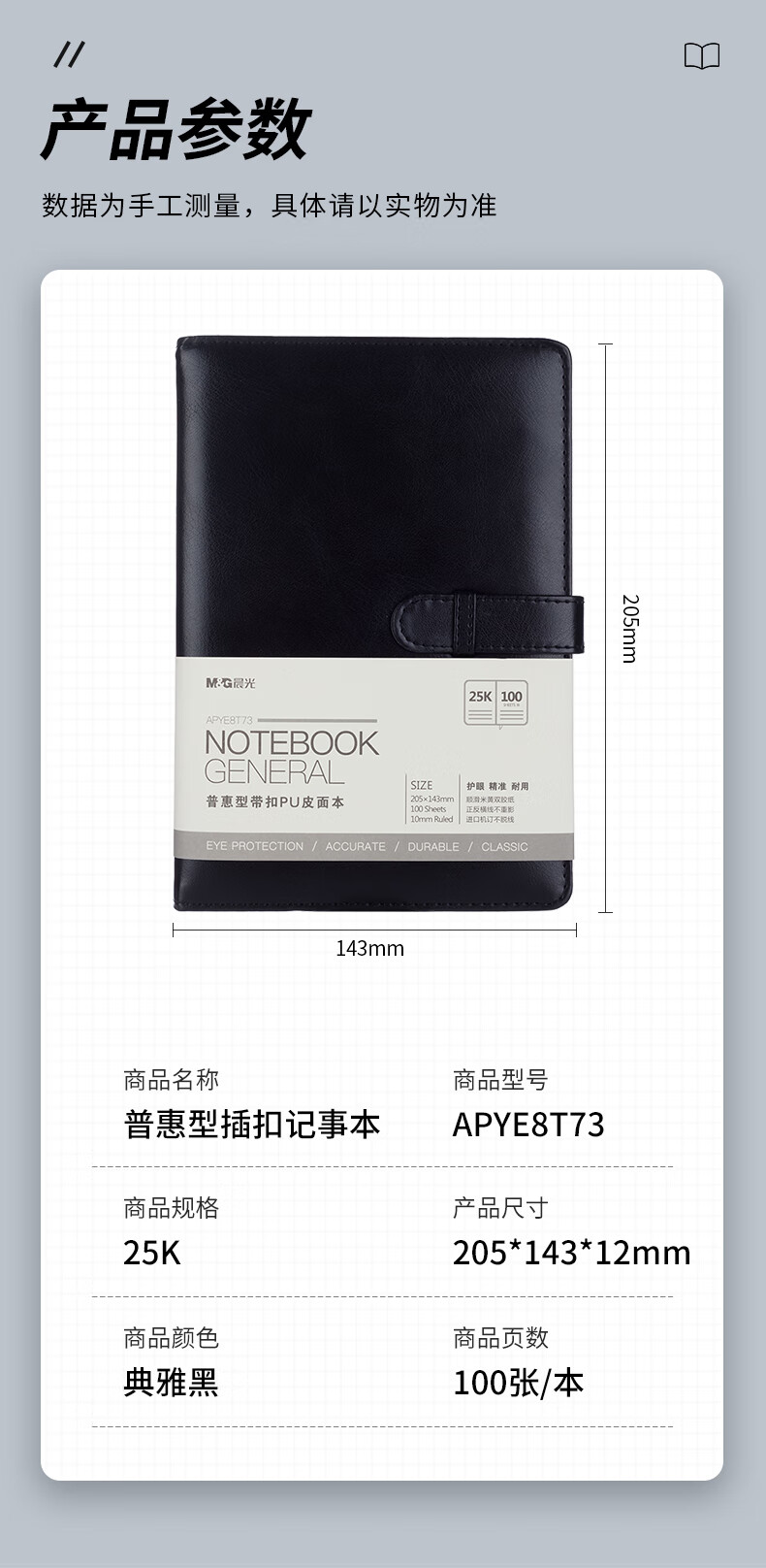 晨光/M&G APYE8T73A 薄本册 黑色软皮革面笔记本本子按扣开会办公用品会议记录本日记本记事本商务A5/25K100张单本