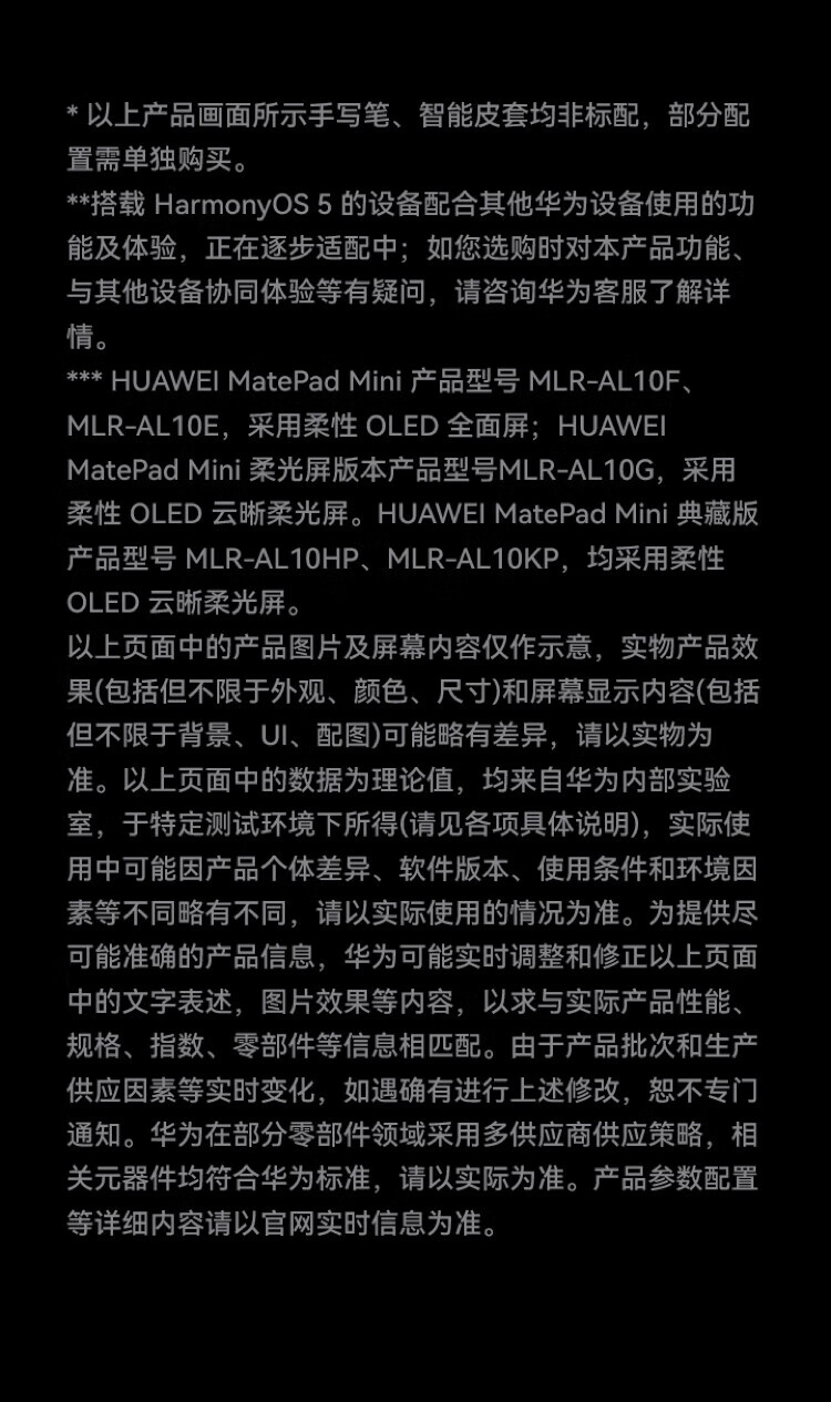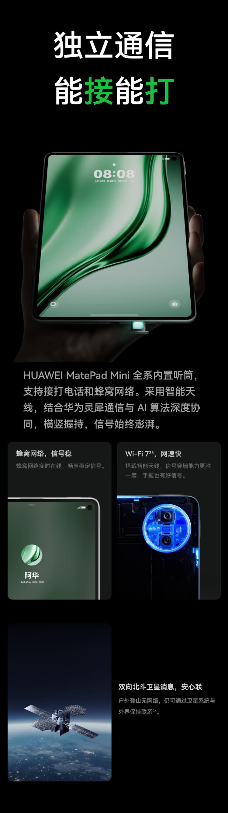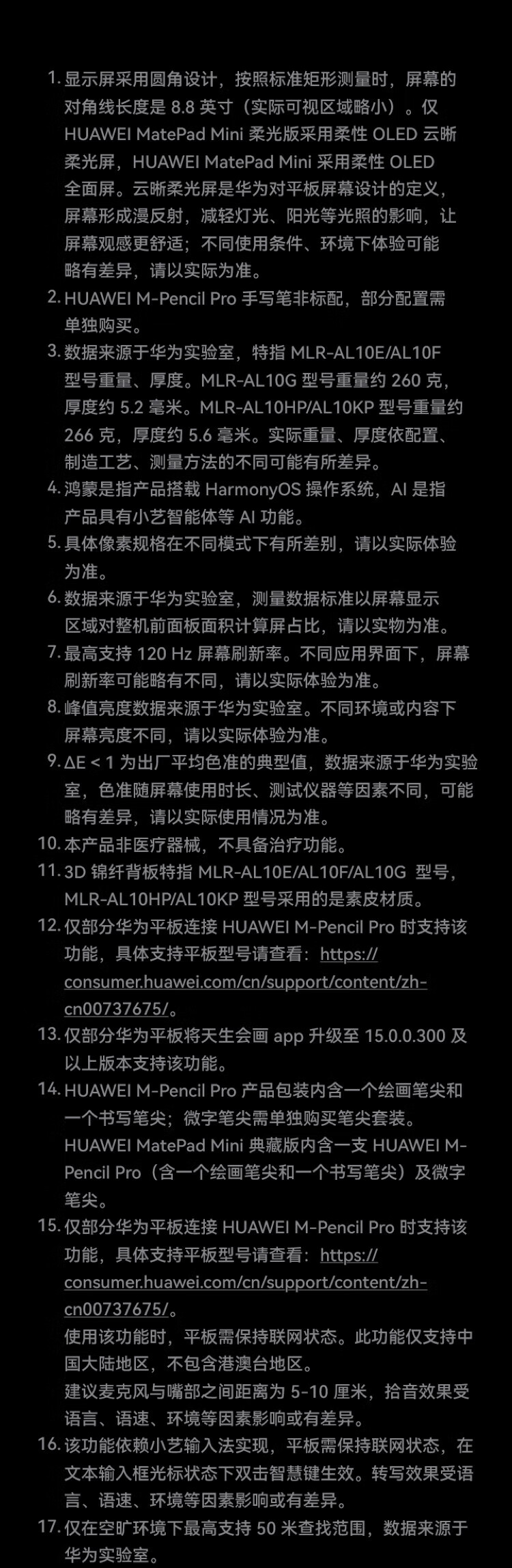 华为/Huawei MatePad Mini 平板式微型计算机 柔光版 华为平板电脑8.8英寸小平板 大手机OLED屏 SIM卡版可通话 12G+512GB 曜石黑
