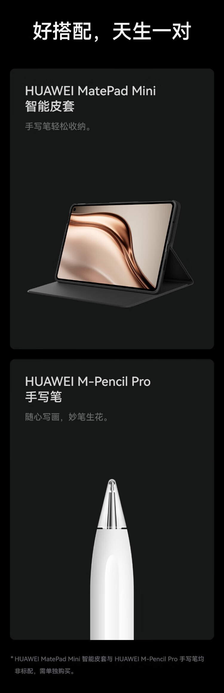 华为/Huawei MatePad Mini 平板式微型计算机 华为平板电脑 8.8英寸小平板 大手机 OLED屏 SIM卡版 可通话 曜石黑 12GB+512GB 官方标配