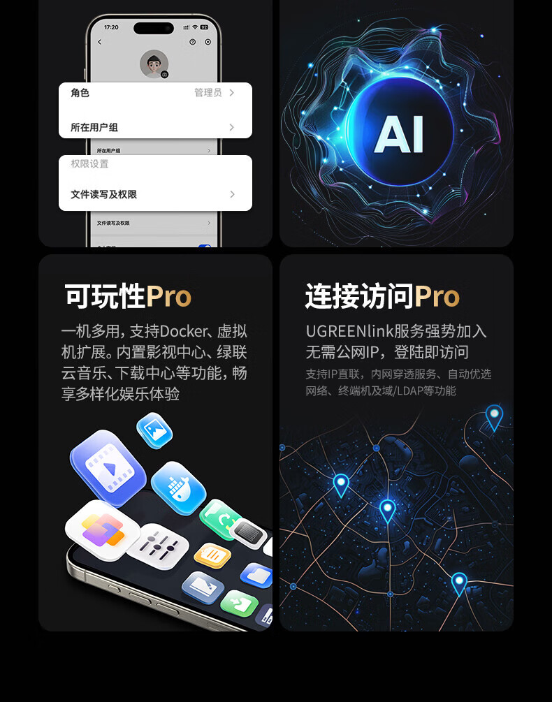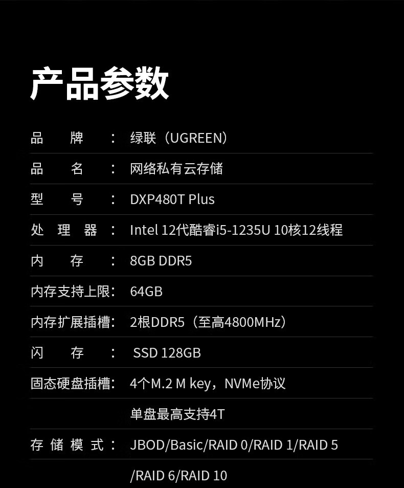 绿联/UGREEN DXP480T Plus 网络存储设备 私有云DXP480T Plus全闪四盘位NAS网络存储个人云硬盘服务器AI相册 万兆网口 媒体高速工作站