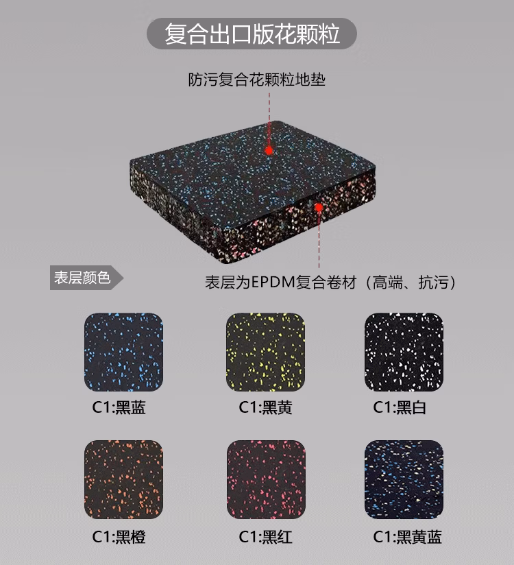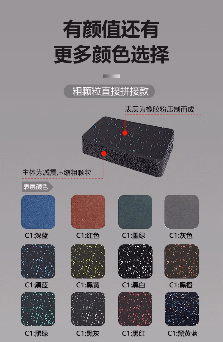 亿迈 YM-73129 塑料制品 健身房橡胶地垫运动地胶隔音防减震地板家用室内哑铃杠铃缓冲静音 粗颗粒拼接款1x1米厚度2.0cm
