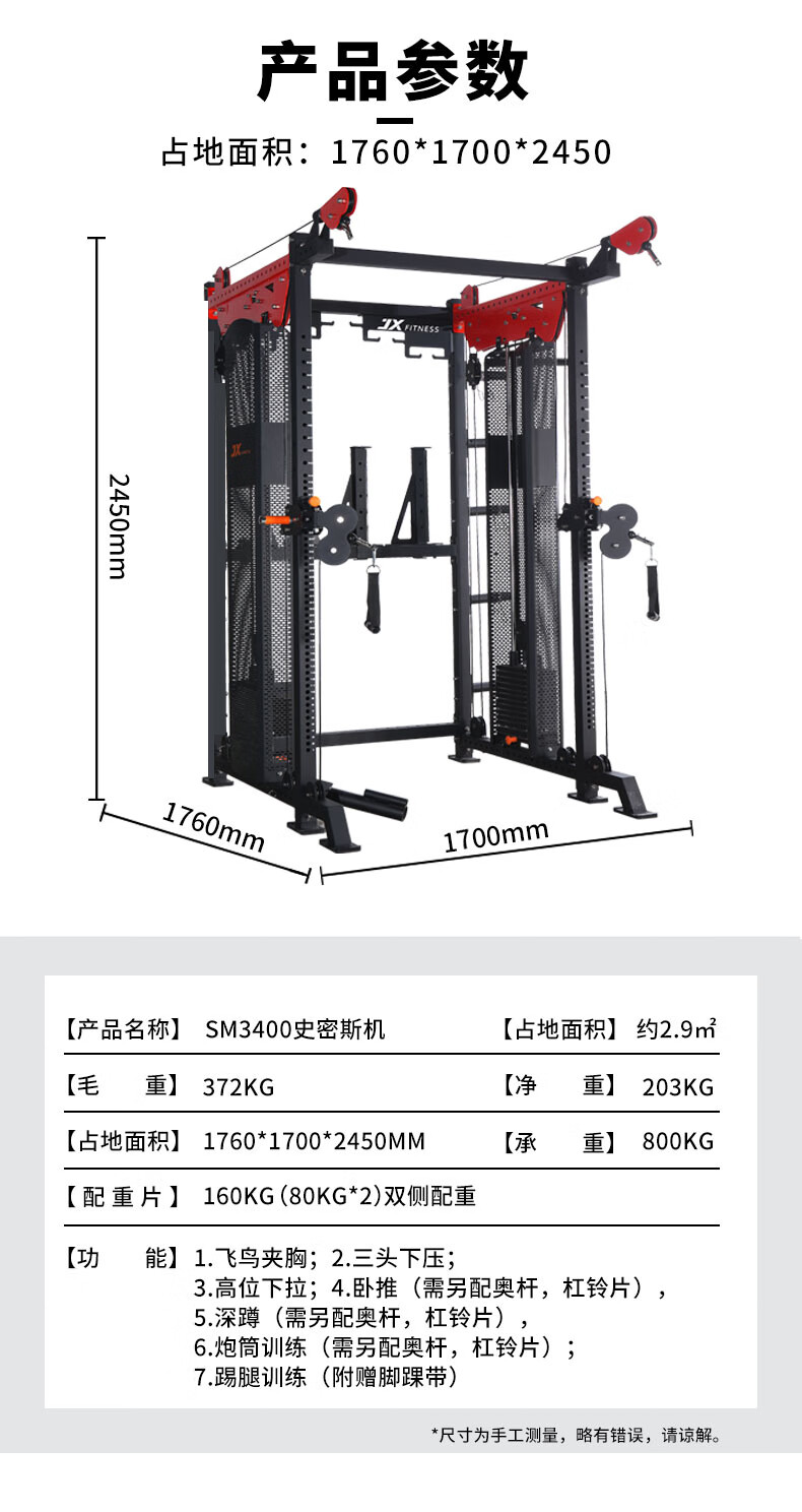军霞/JUNXIA JX-SM3300 举重床 商用史密斯机龙门架多(含卧推凳+100KG铃片)
