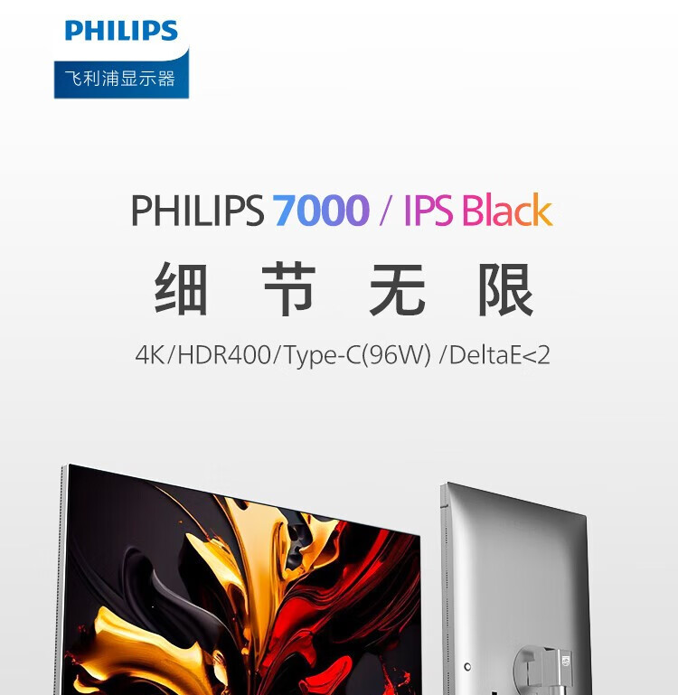 飞利浦/PHILIPS 27E2F7901 液晶显示器 27英寸 4K显示器 NanoIPS-Black TypeC96W 10bit HDR400 出厂校准 硬件防蓝光 设计显示屏 27E2F7901