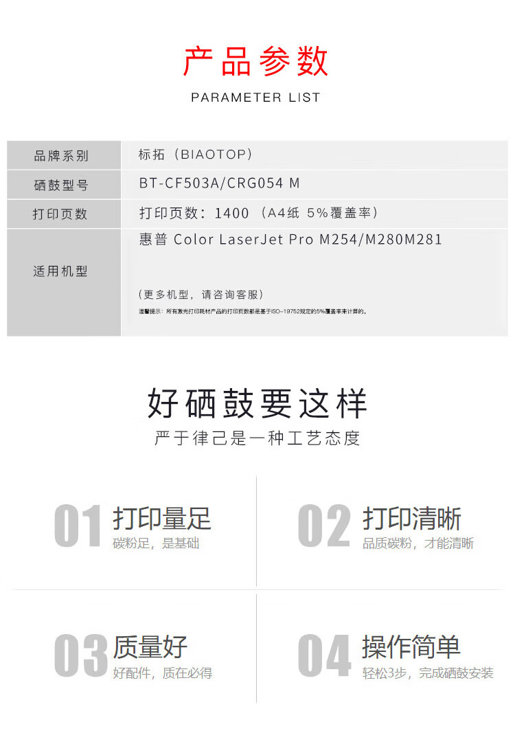 标拓/Biaotop BT-CF503A 硒鼓 适用HP M254NW MF643CDW硒鼓 (计价单位:支) 红色