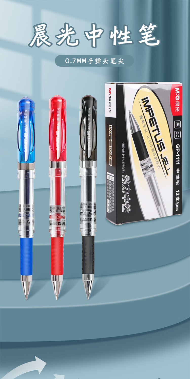 晨光/M&G GP1111C 书写用笔类用具 0.7mm红色中性笔大容量子弹头练字签字笔办公水笔GP1111C 12支装