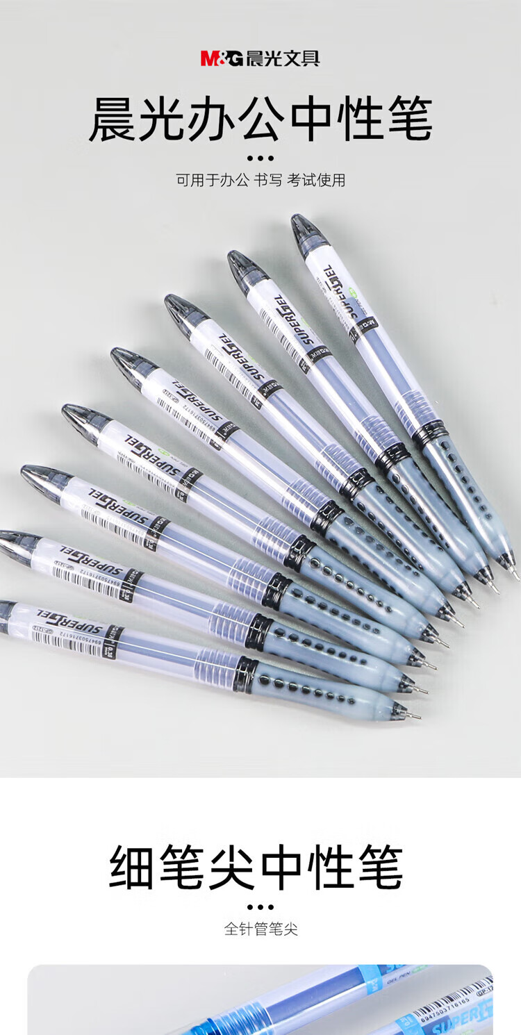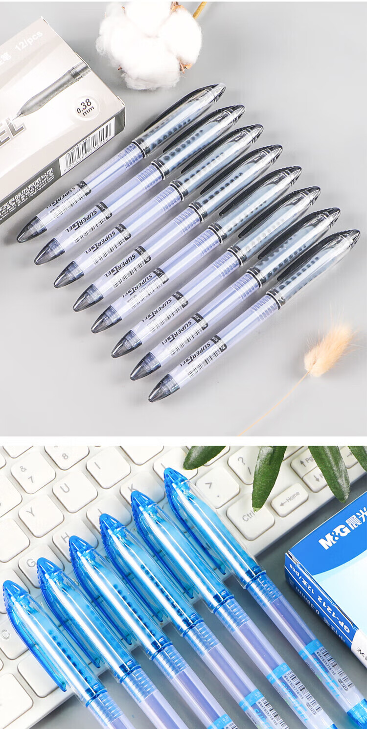 晨光/M&G GP1212B 书写用笔类用具 灵智系列拔盖中性笔0.38mm蓝色全针管签字笔财务中性笔学习办公用水性笔 12支装