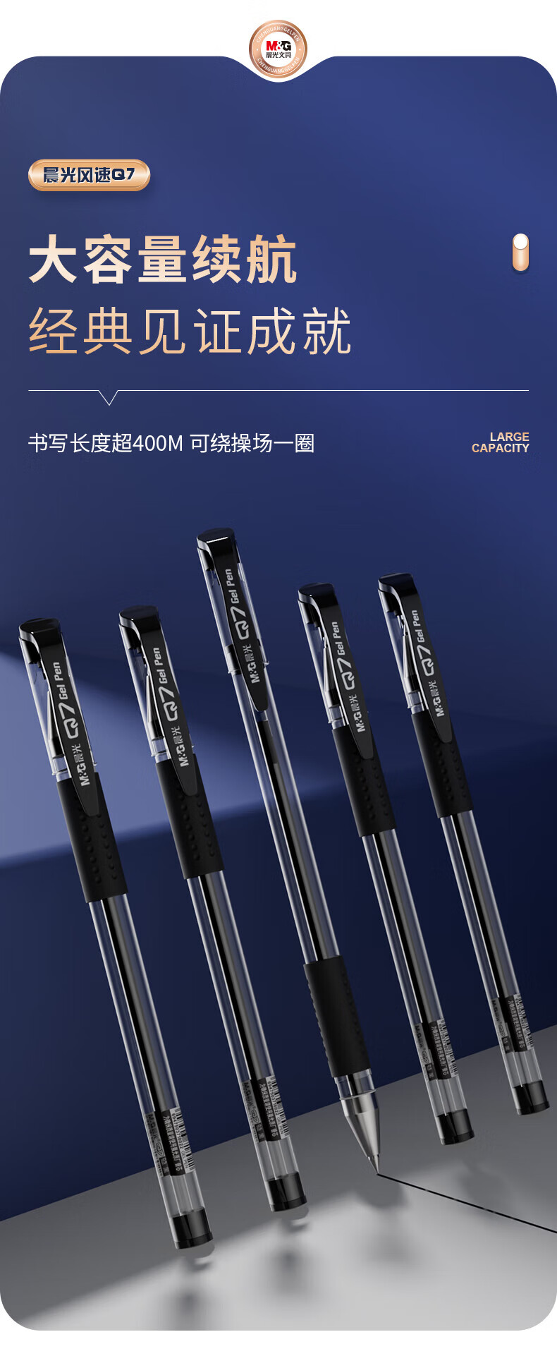 晨光/M&G Q7A 书写用笔类用具 经典风速Q7/0.5mm黑色中性笔子弹头签字笔顺滑拔盖水笔办公用笔12支