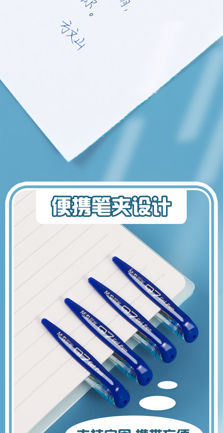 晨光/M&G Q7B 书写用笔类用具 经典风速Q7/0.5mm蓝色中性笔子弹头签字笔顺滑拔盖水笔办公用笔12支