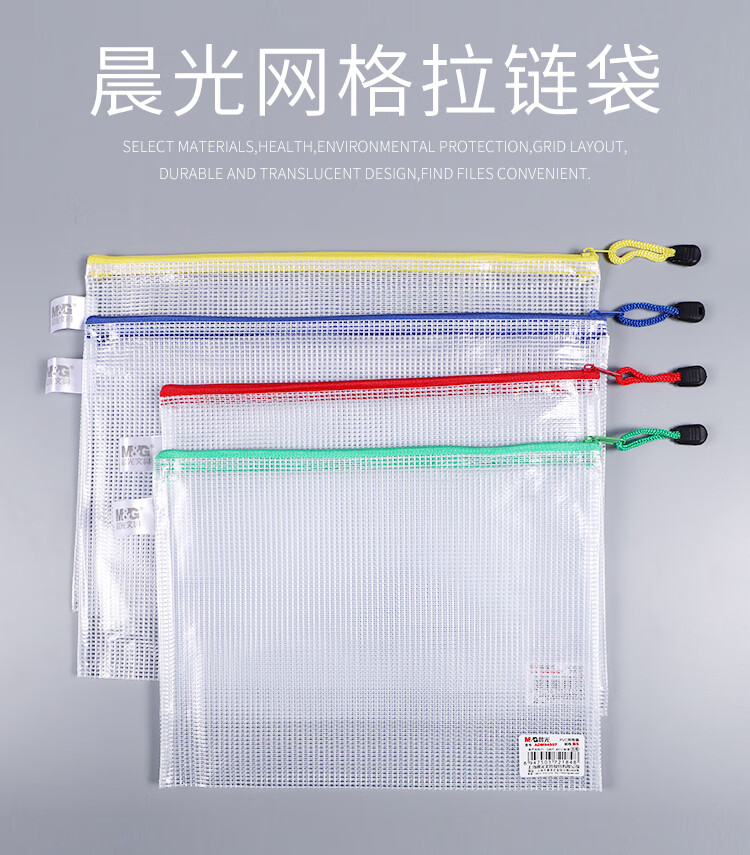 晨光/M&G ADM94508 文件袋 A5文件袋防水拉链袋pvc网格网纹袋票据资料袋颜色随机1包装