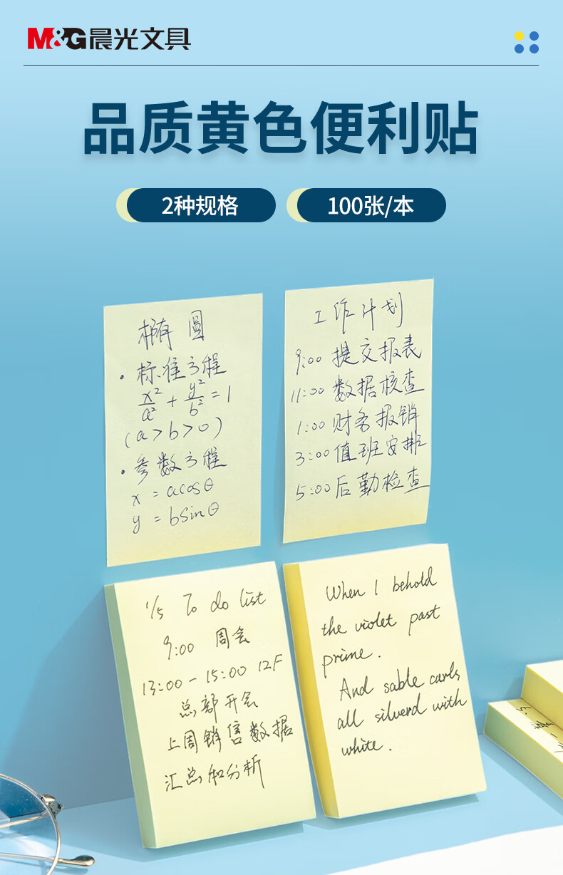 晨光/M&G YS-02 记事贴 文具100张黄色便利贴 76*51mm便签纸n次贴便签贴 记事贴留言贴记事本子