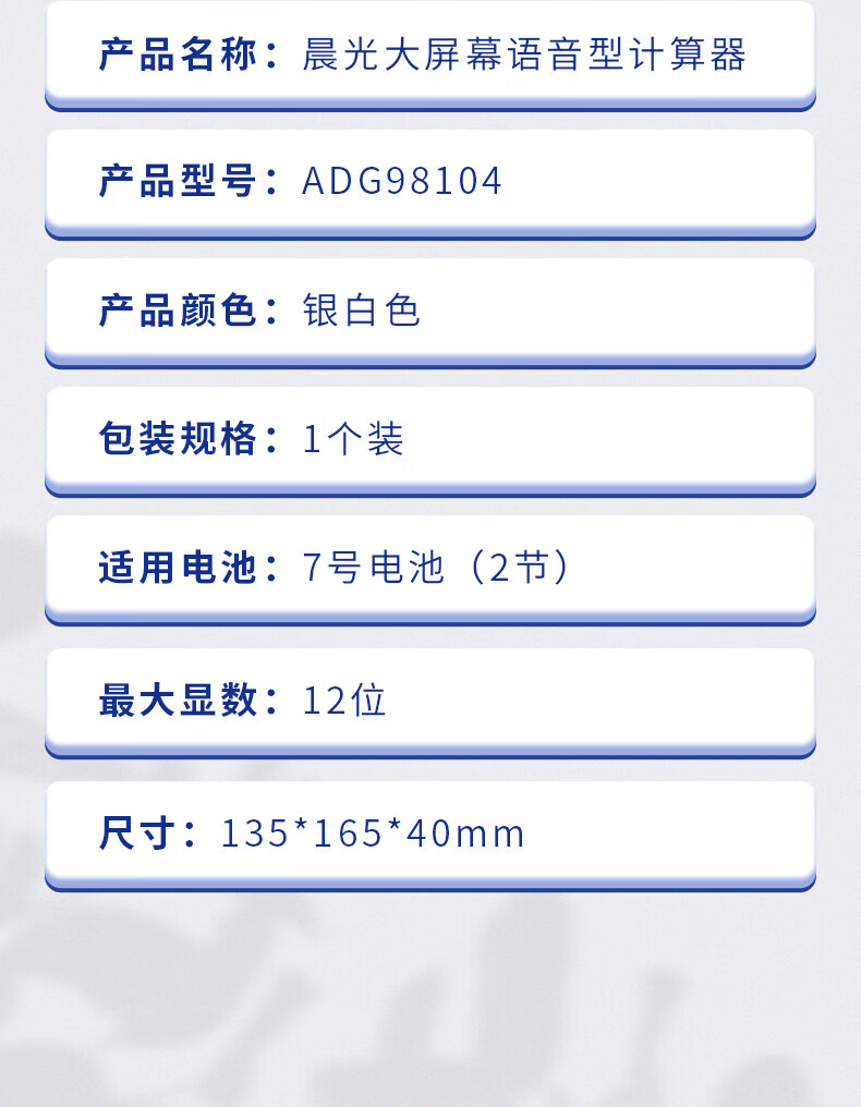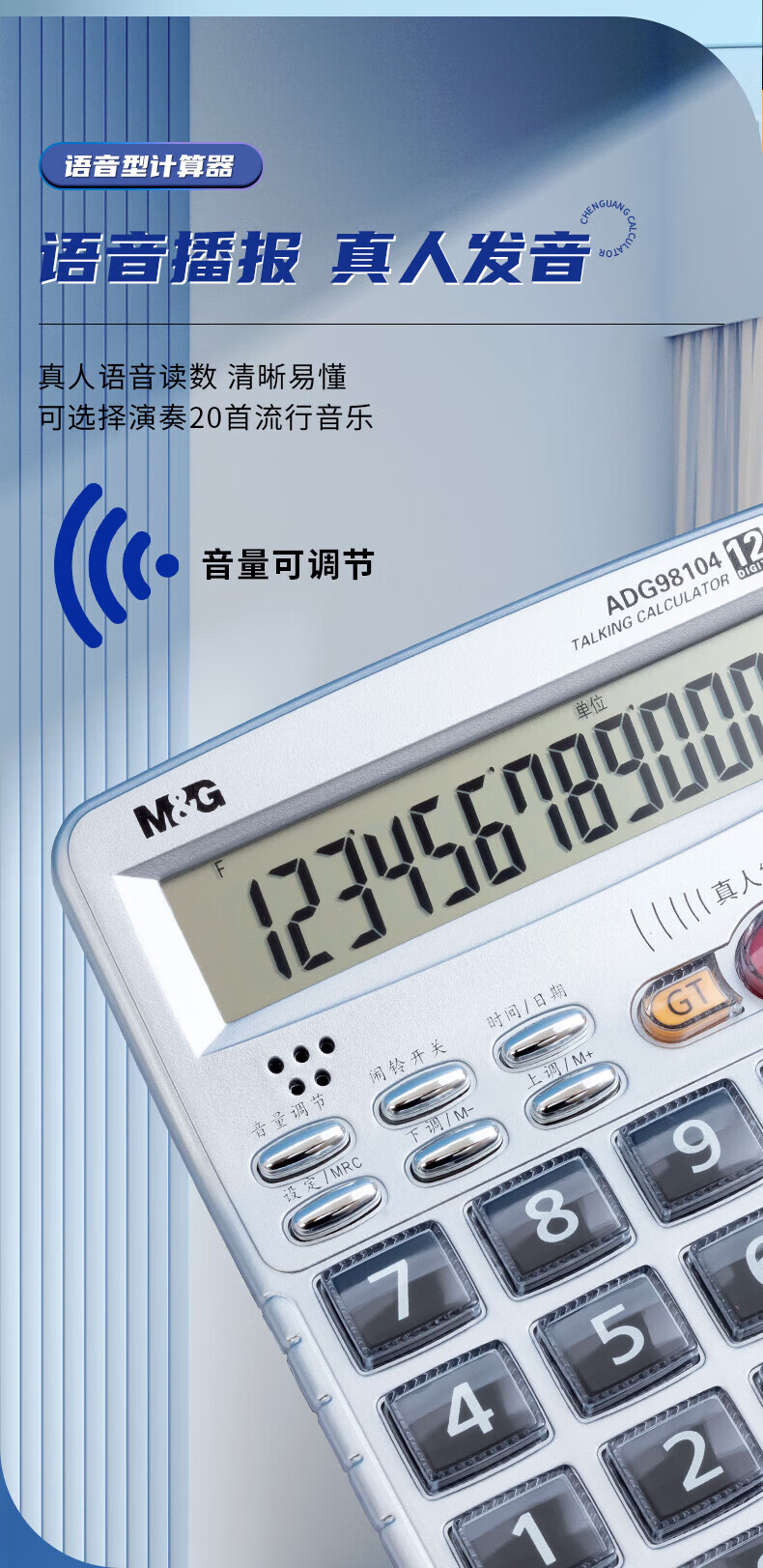 晨光/M&G ADG98104 电子计算器 12位显示语音计算器桌面办公计算机学生办公通用屏幕计算器银色ADG98104 1个装