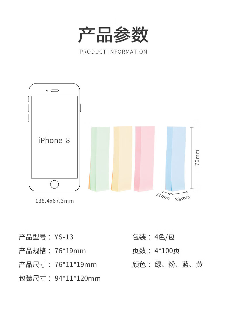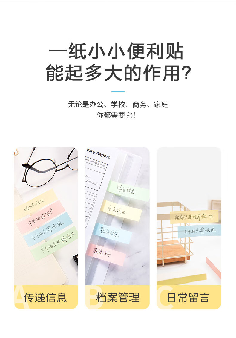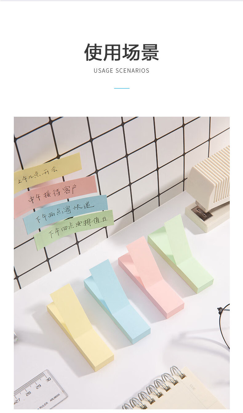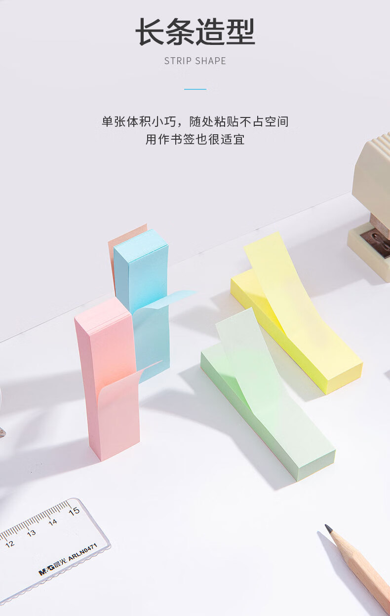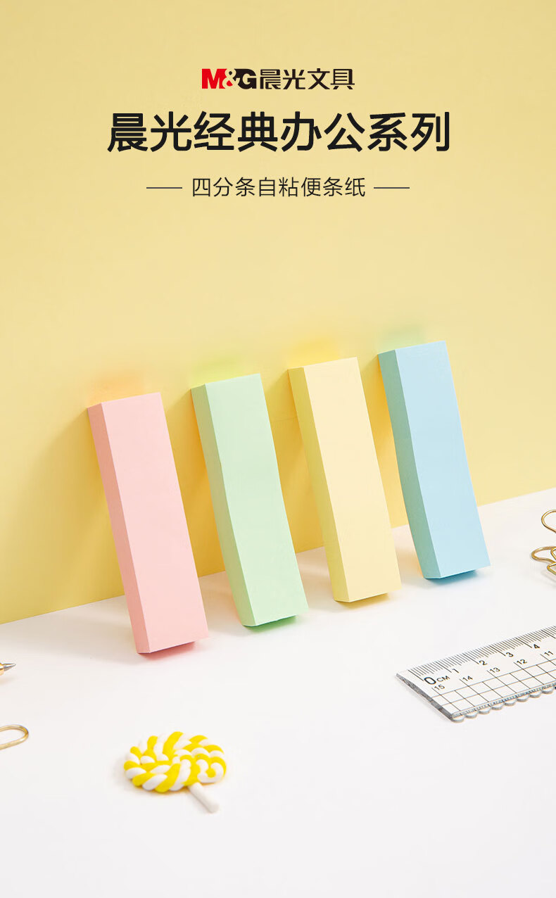 晨光/M&G YS-13 记事贴 晨光彩色便利贴便签纸留言贴3X3四分条优事贴N次贴易事贴100页四分条便签纸 YS-13 1包