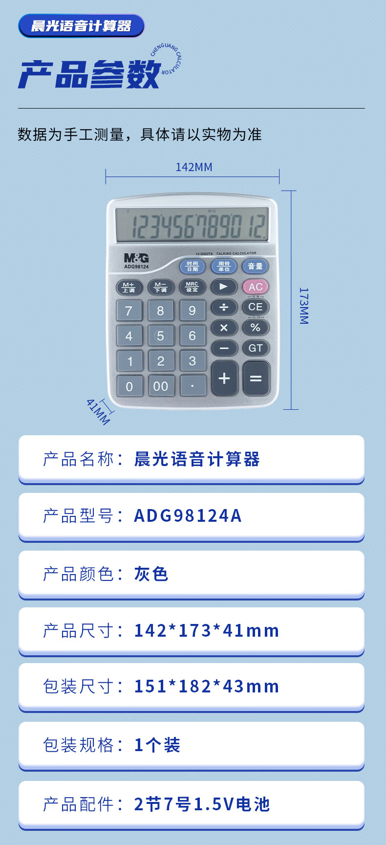 晨光/M&G ADG98124 电子计算器 语音型计算器 学生/办公12位大屏幕真人语音计算器