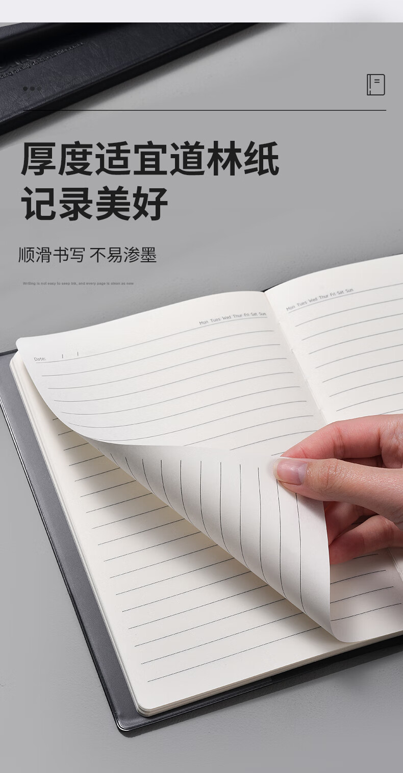 晨光/M&G APYLL488 薄本册 文具会议记录本皮面商务b5笔记本本子软皮记录记事本 72张日程本办公用品黑1本