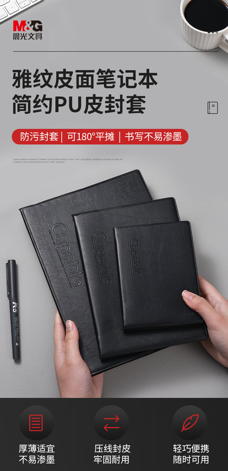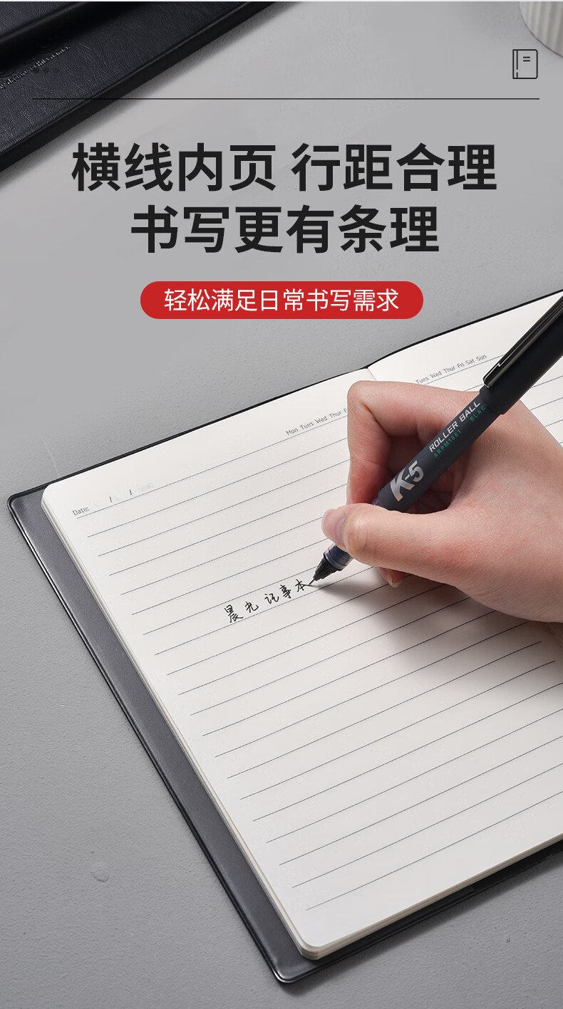 晨光/M&G APYLN488 薄本册 文具会议记录本皮面商务A6笔记本本子软皮记录小记事本 96张口袋本办公用品黑1本