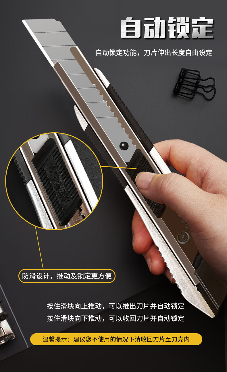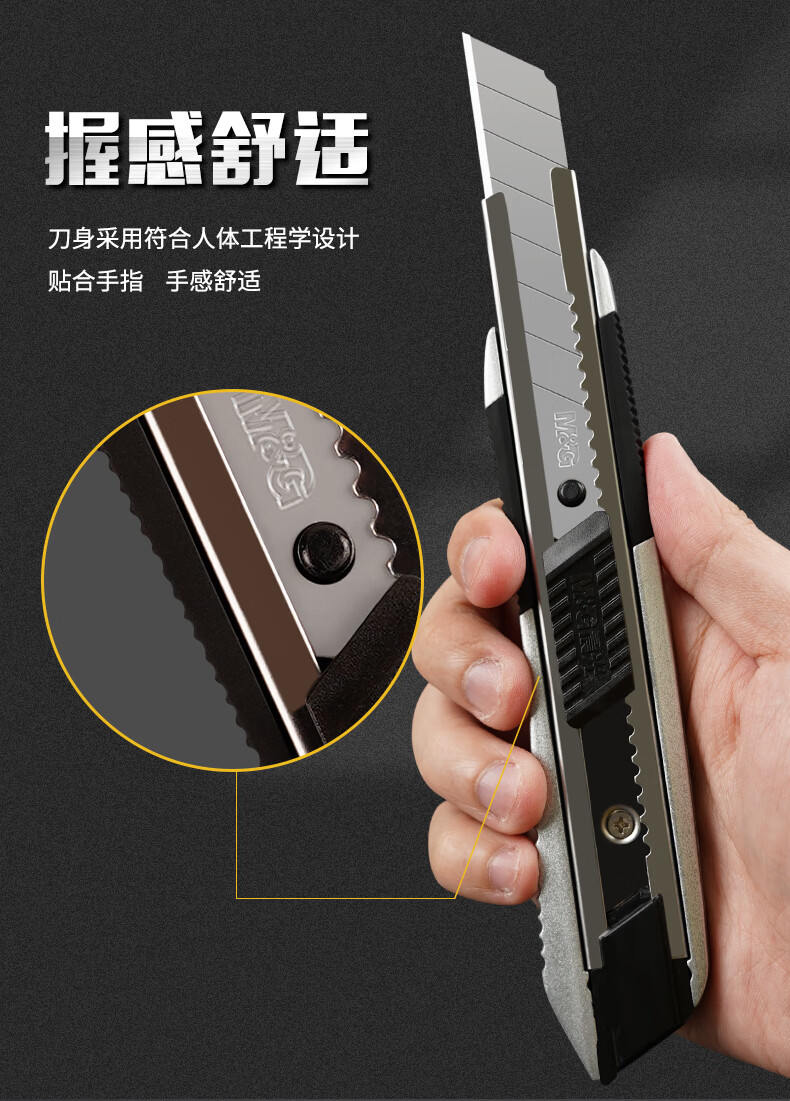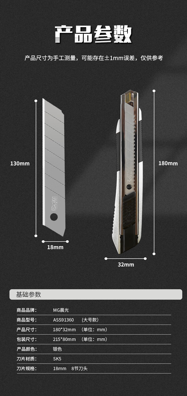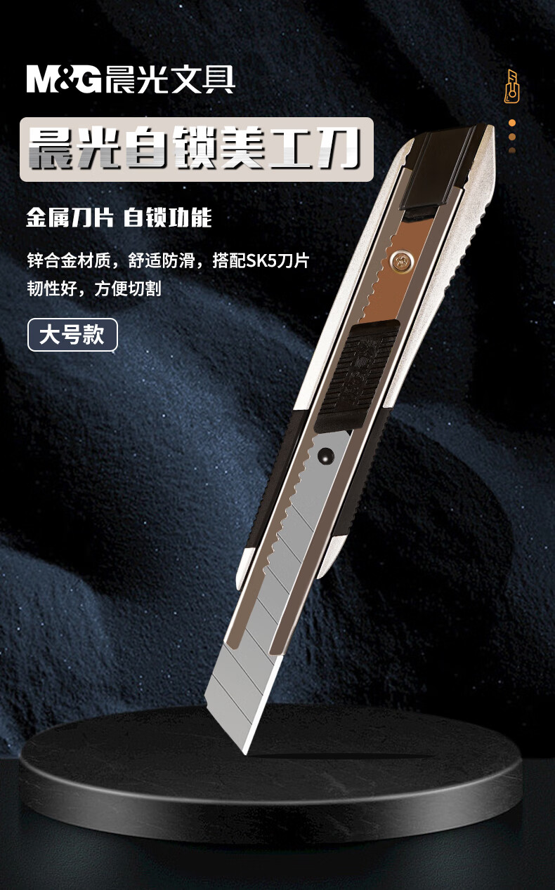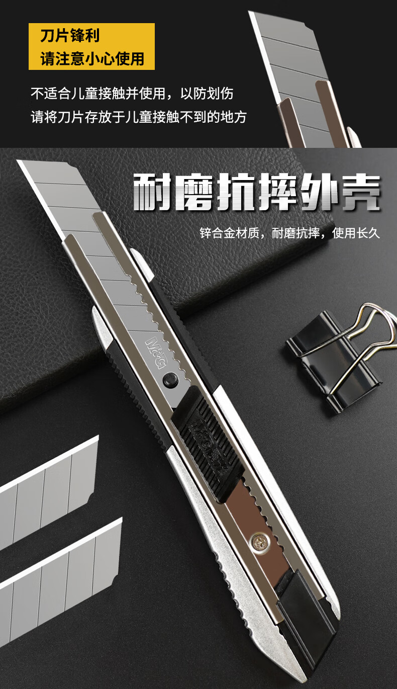 晨光/M&G ASS91360 美工刀 18mm锌合金金属大号美工刀 自锁裁纸刀壁纸刀 银色单把装