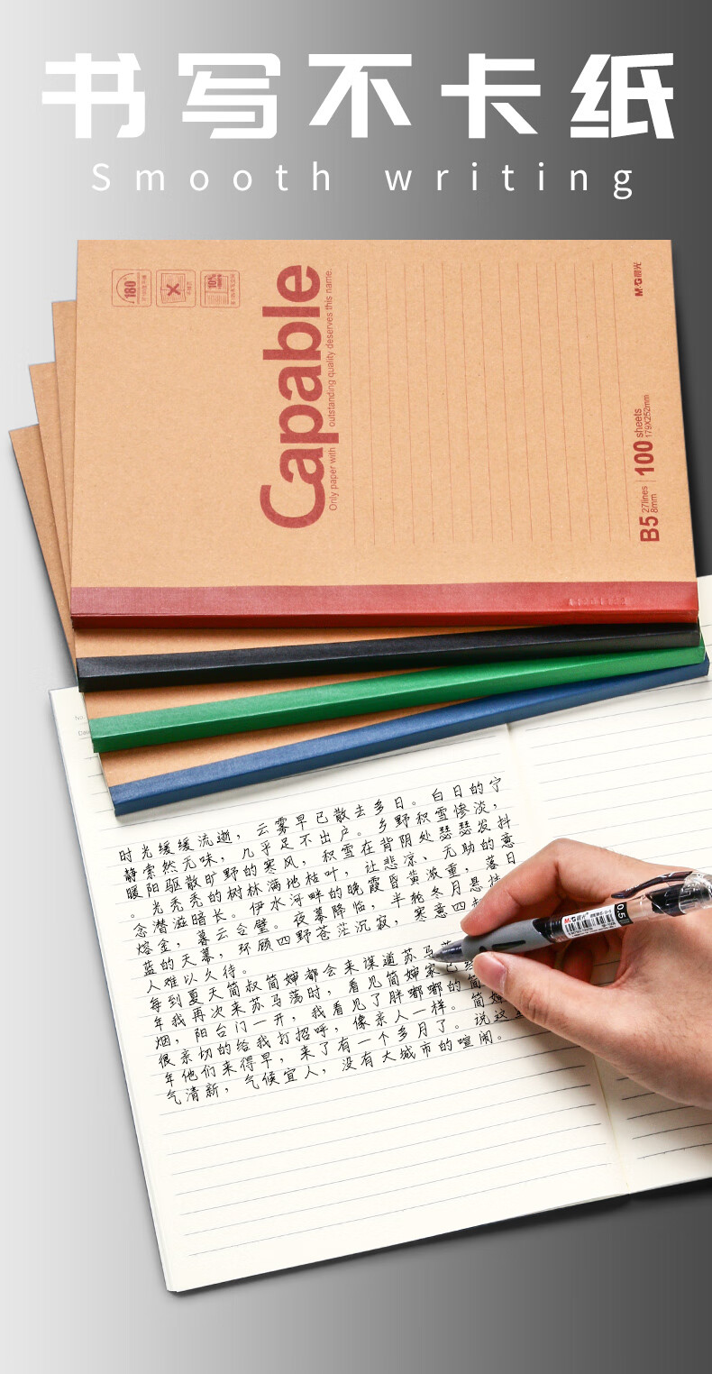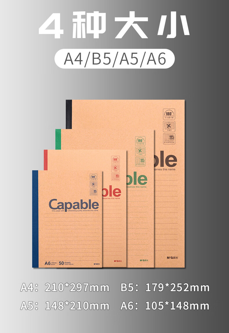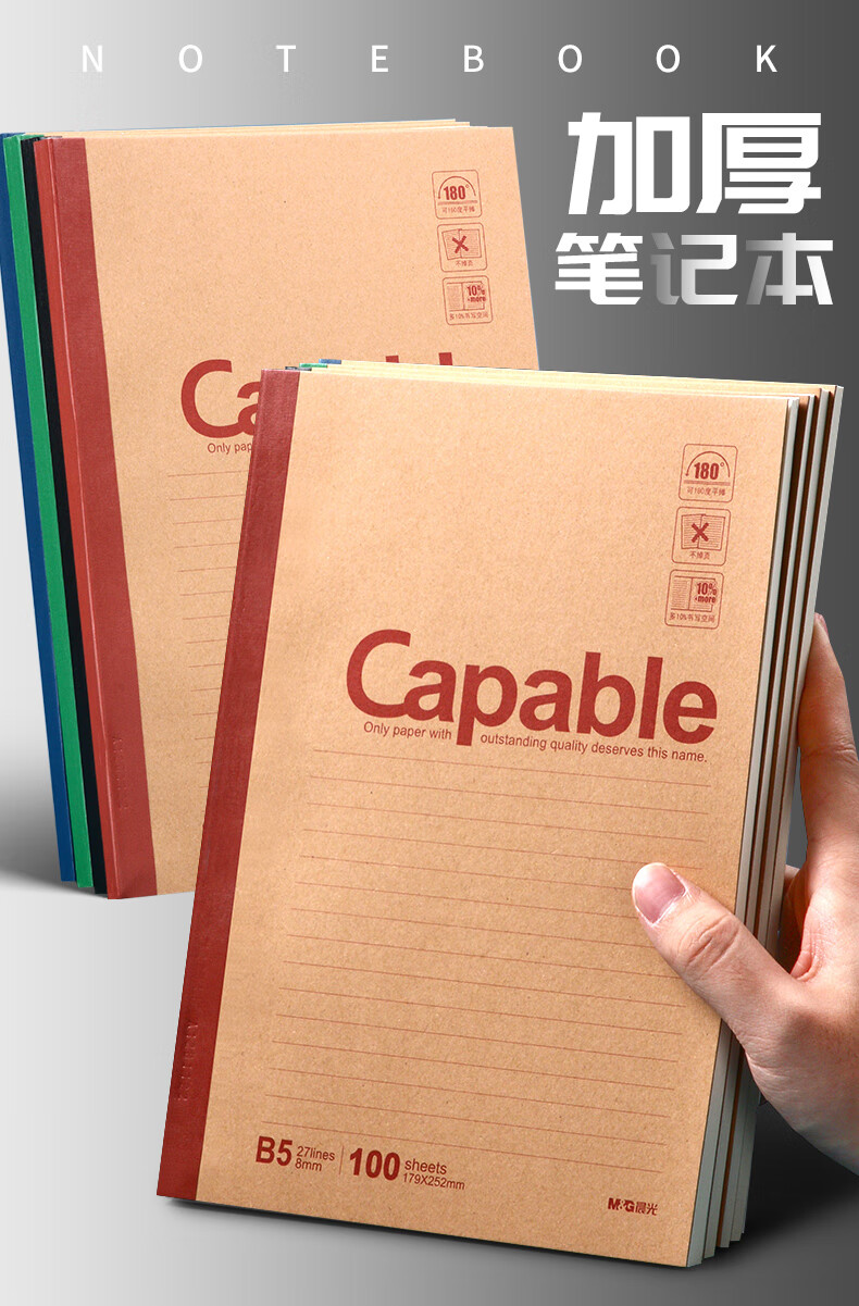 晨光/M&G APYJU550 薄本册 牛皮无线装订笔记本APYJU550简约学生复古牛皮纸记事本办公加厚练习本软抄本作业本A5/80页10本装