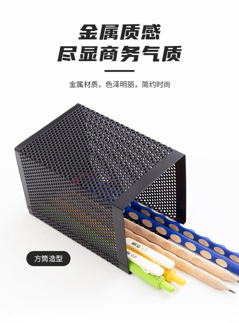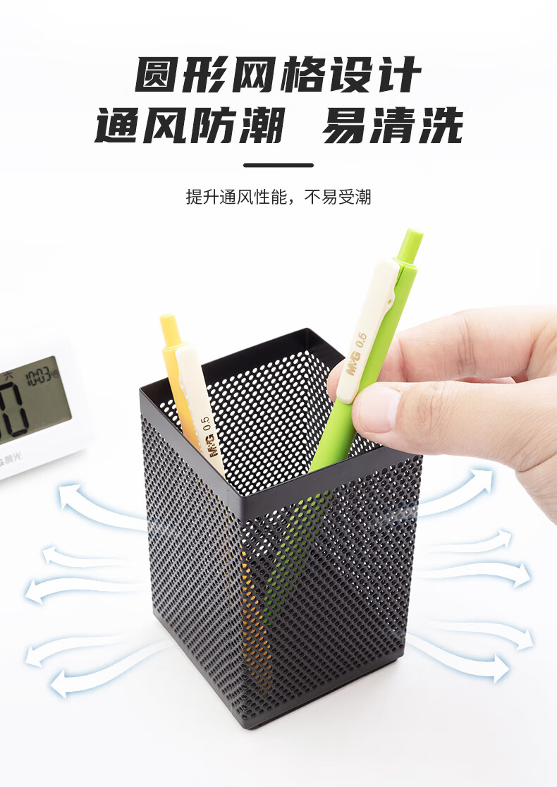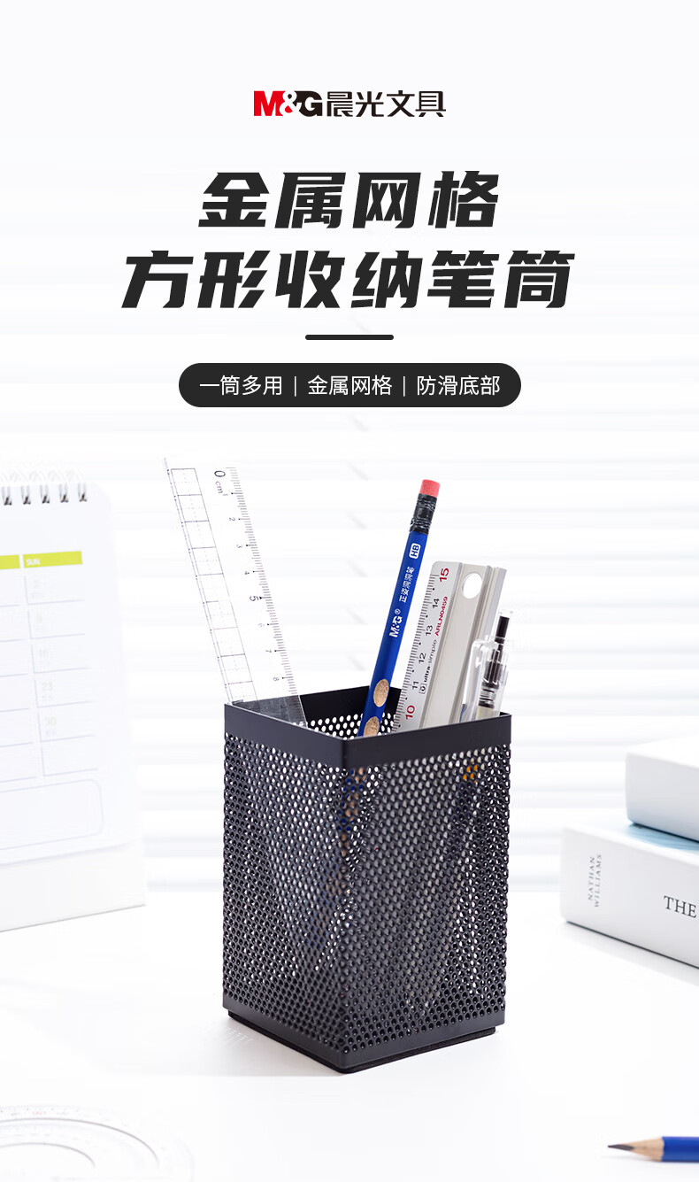 晨光/M&G ABT98401 笔筒 金属时尚网格方形笔筒 学生办公用品 桌面收纳盒 黑色单个装