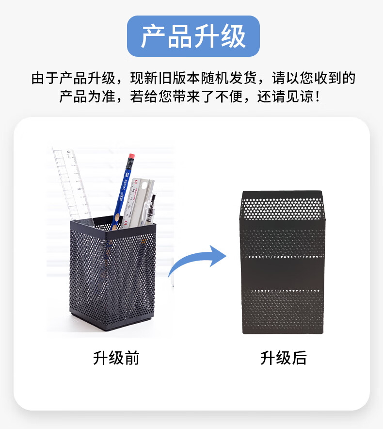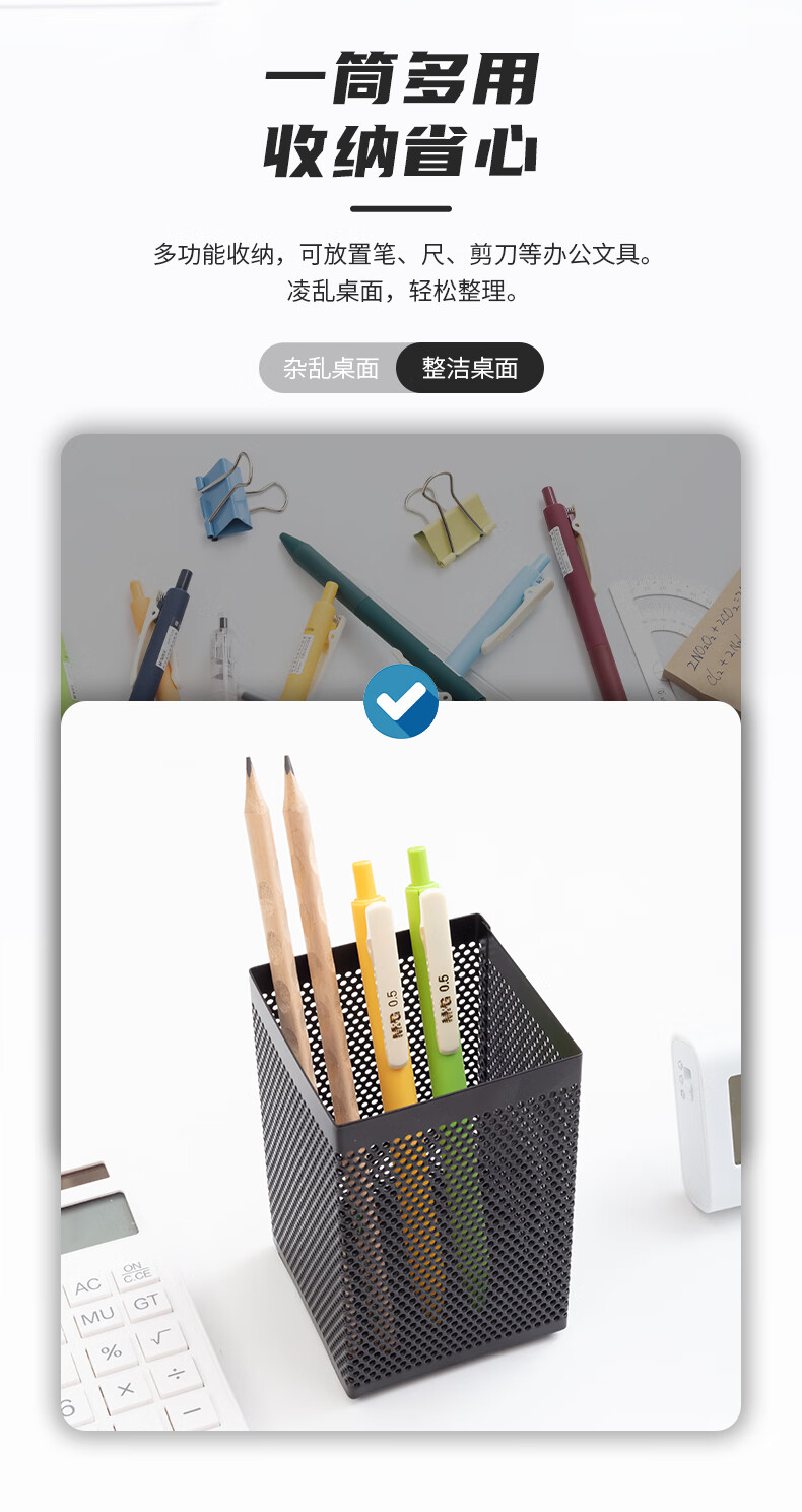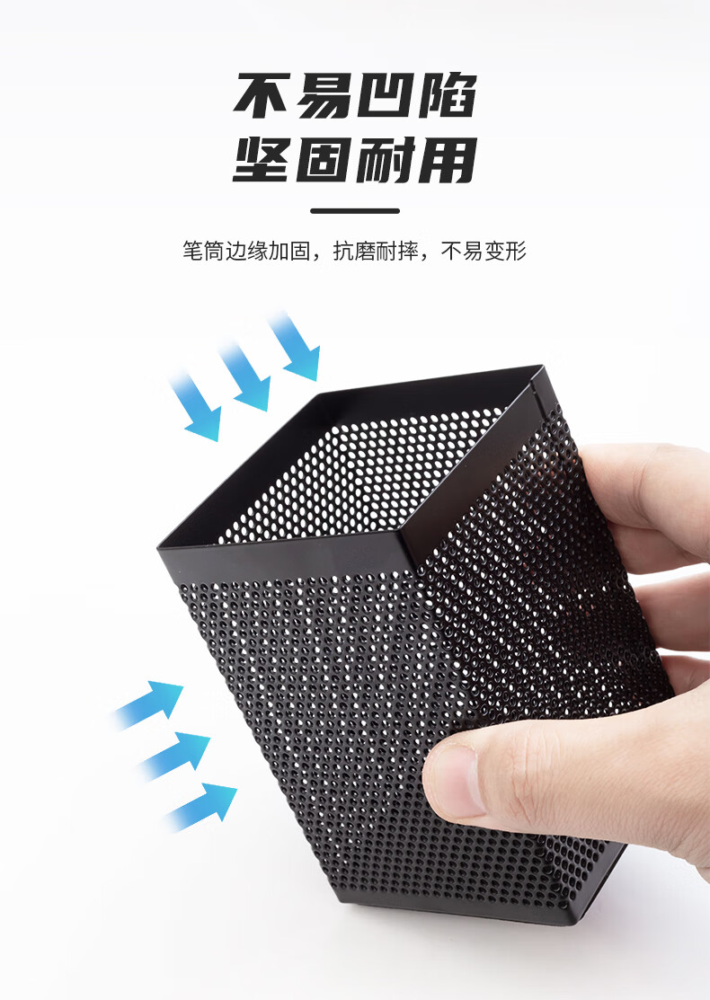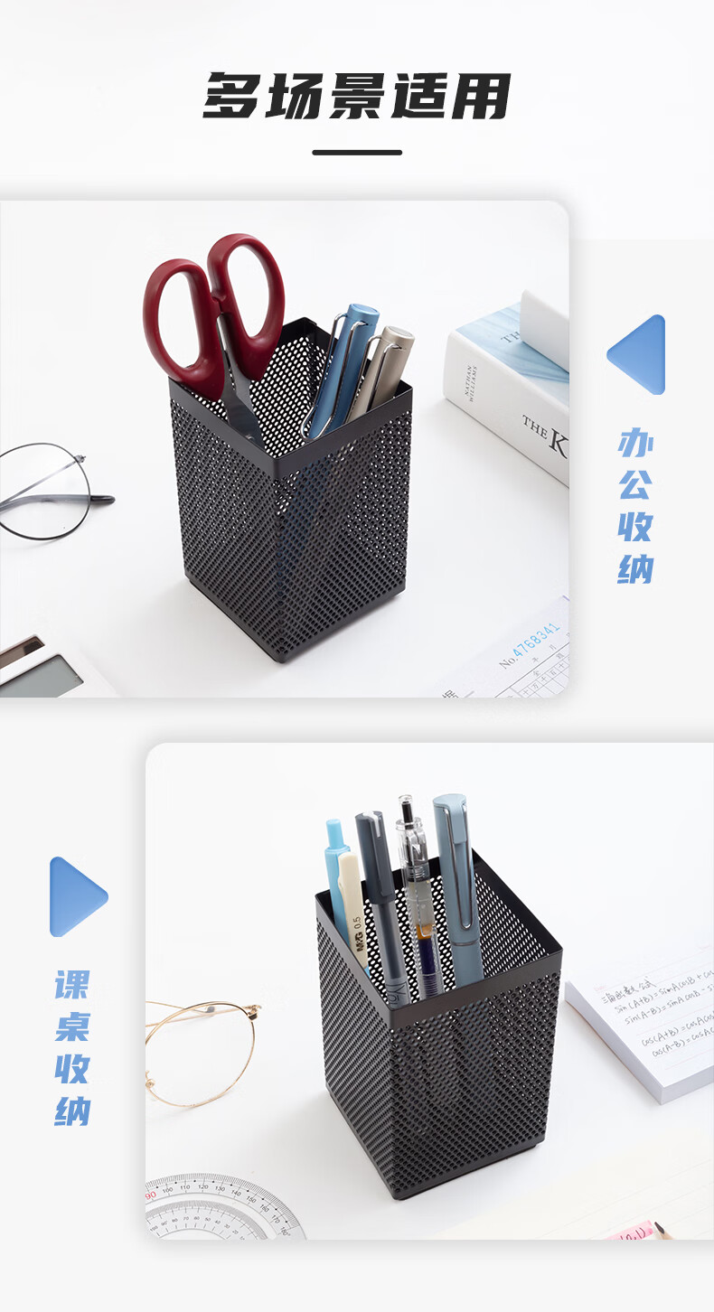 晨光/M&G ABT98401 笔筒 金属时尚网格方形笔筒 学生办公用品 桌面收纳盒 黑色单个装