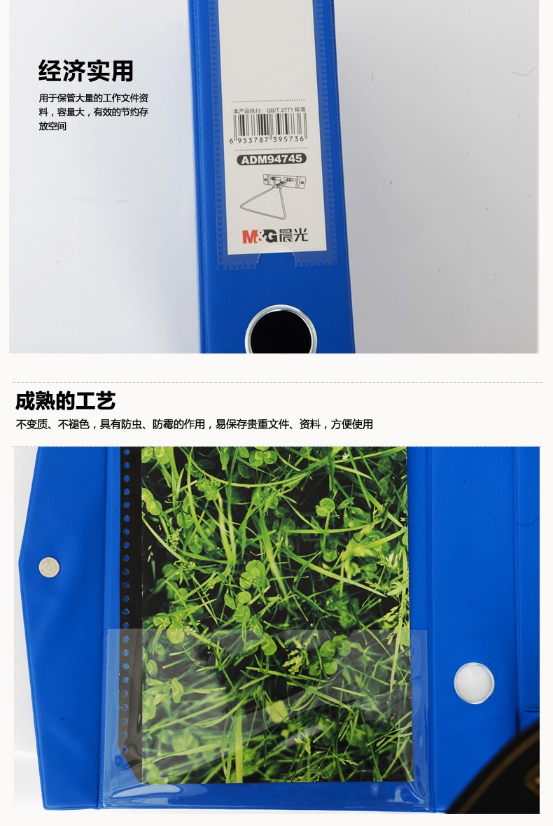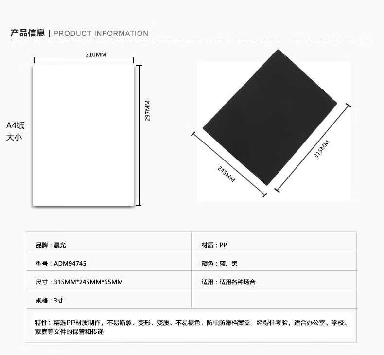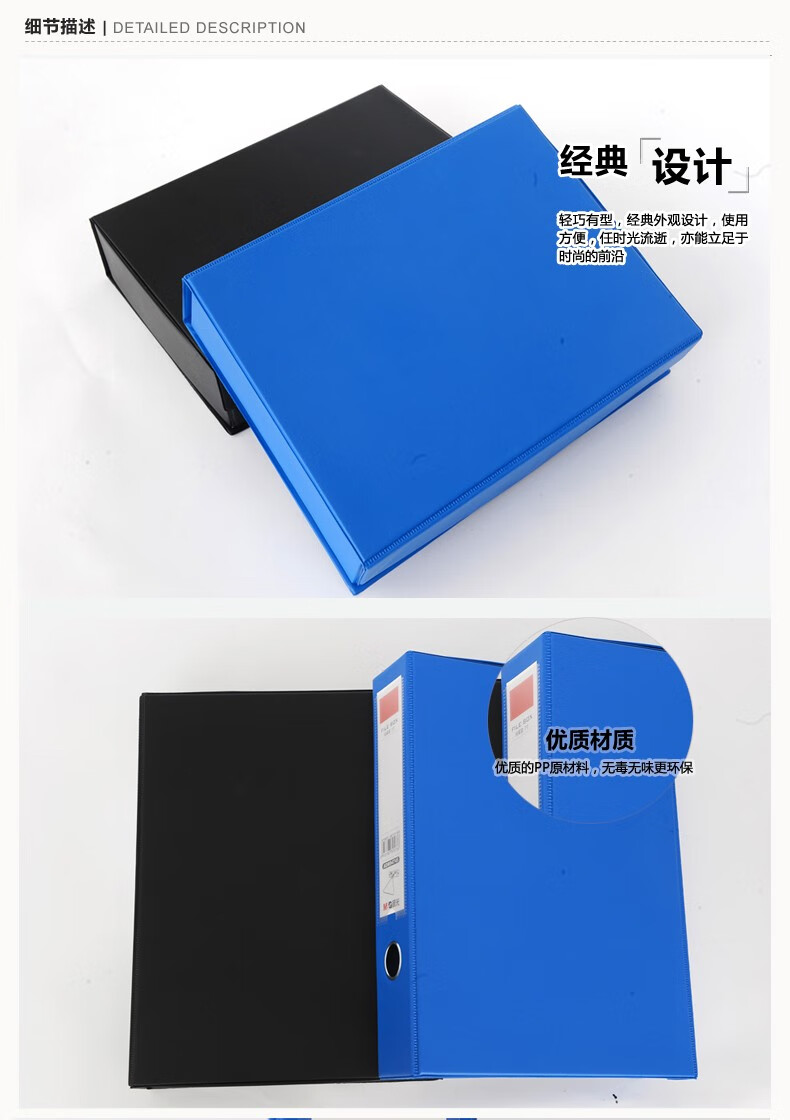 包装清单  :   结实耐用磁扣式3寸办公收纳盒 A4文件资料盒ADM94745 蓝色 背宽65mm