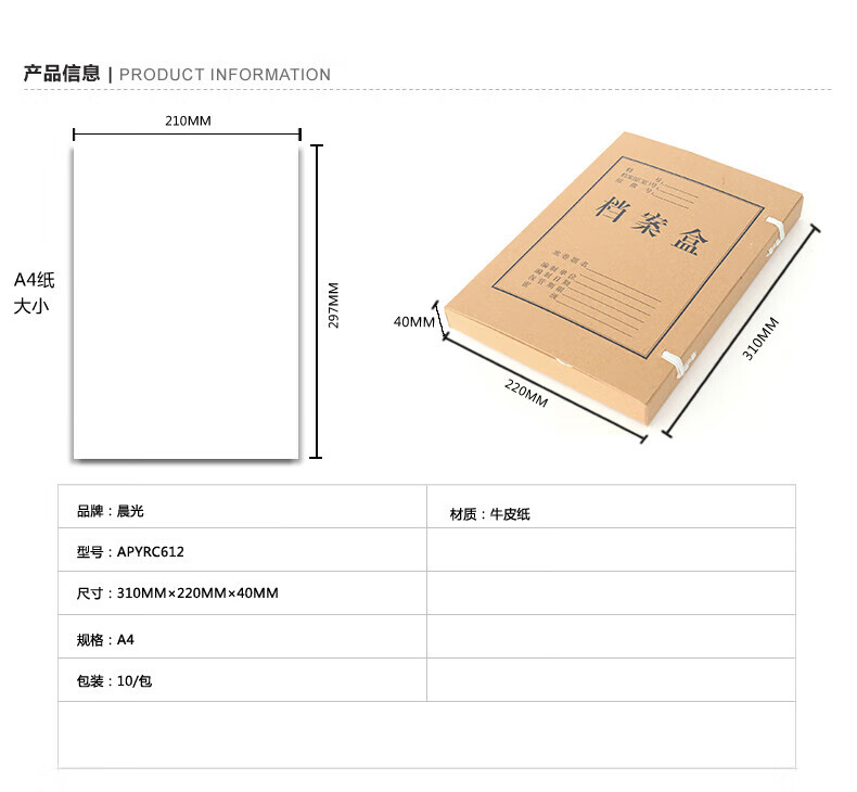 晨光/M&G APYRC612 档案盒 A4牛皮纸档案盒加厚文件纸盒收纳整理资料盒财务凭证盒 40mm