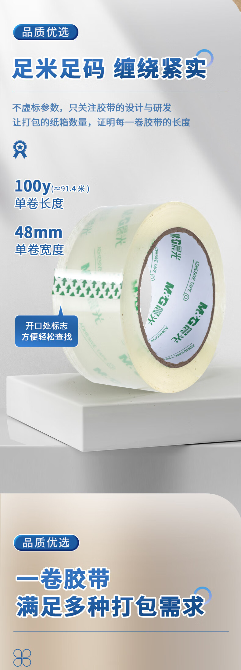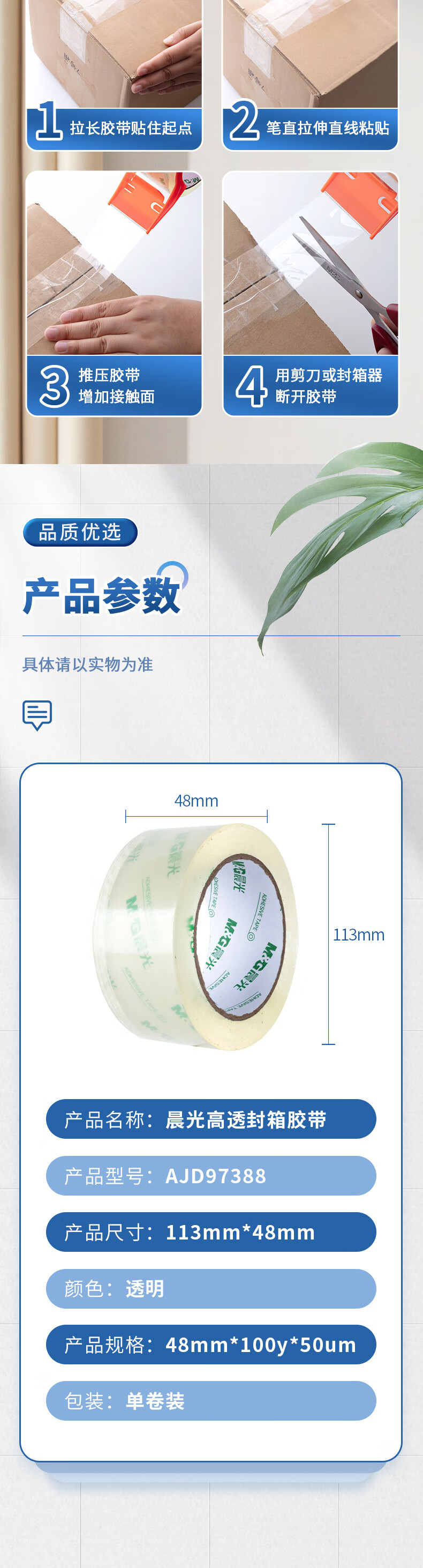 晨光/M&G AJD97388 胶带 高品质高透明封箱胶带打包胶带 48mm*100y*50um (91.4米/卷) 单卷