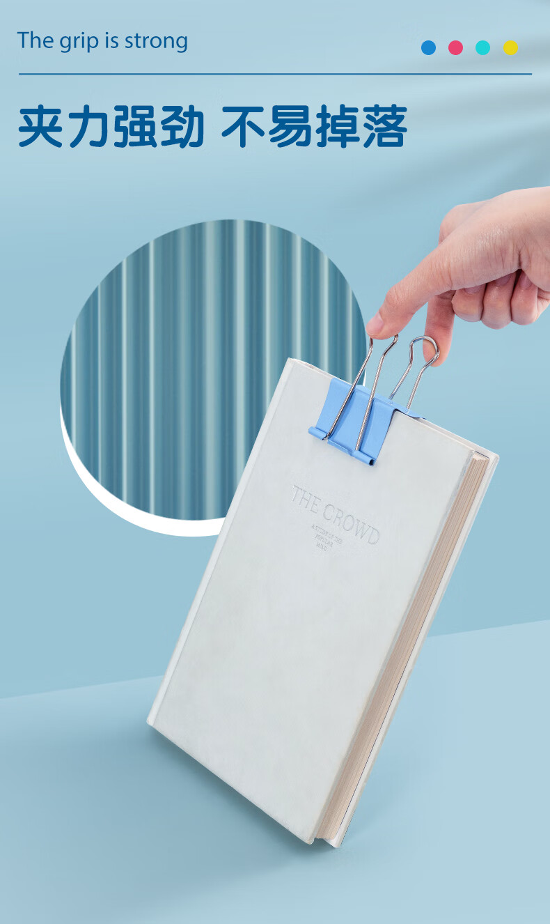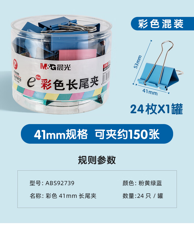 晨光/M&G ABS92739 长尾夹 2#41mm 24只/罐 彩色长尾夹 大号金属票据夹 Eplus系列办公燕尾夹