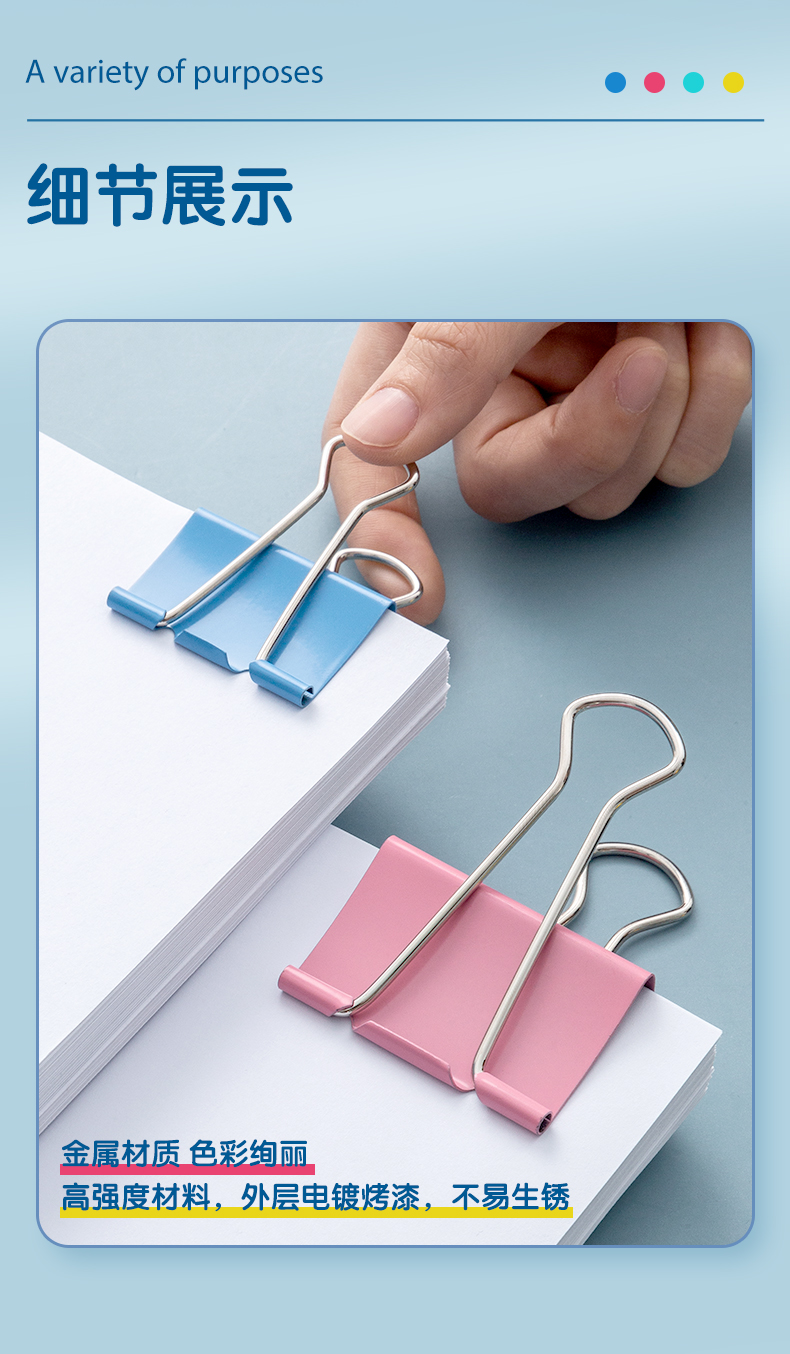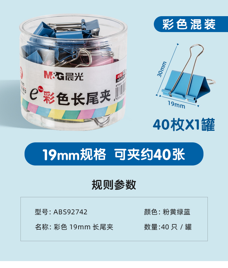 晨光/M&G ABS92742 长尾夹 5#19mm 40只/罐 彩色长尾夹 小号金属票据夹 Eplus系列办公燕尾夹