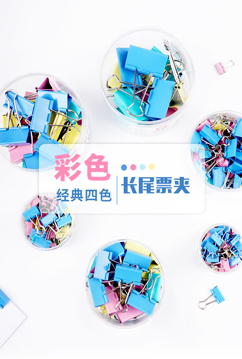 晨光/M&G ABS92743 长尾夹 6#15mm 60只/罐 彩色长尾夹 小号金属票据夹 Eplus系列办公燕尾夹