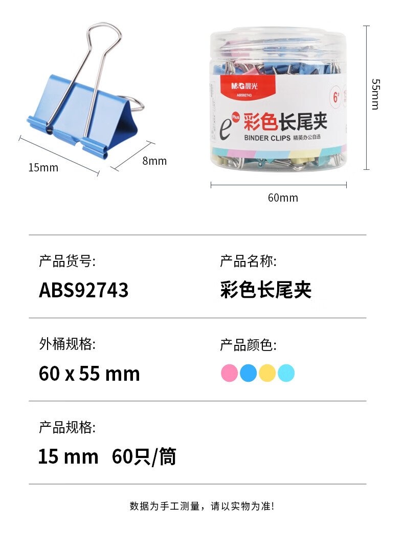 包装清单  :   晨光(M&G)Eplus彩色60枚15mm长尾夹