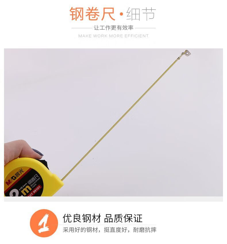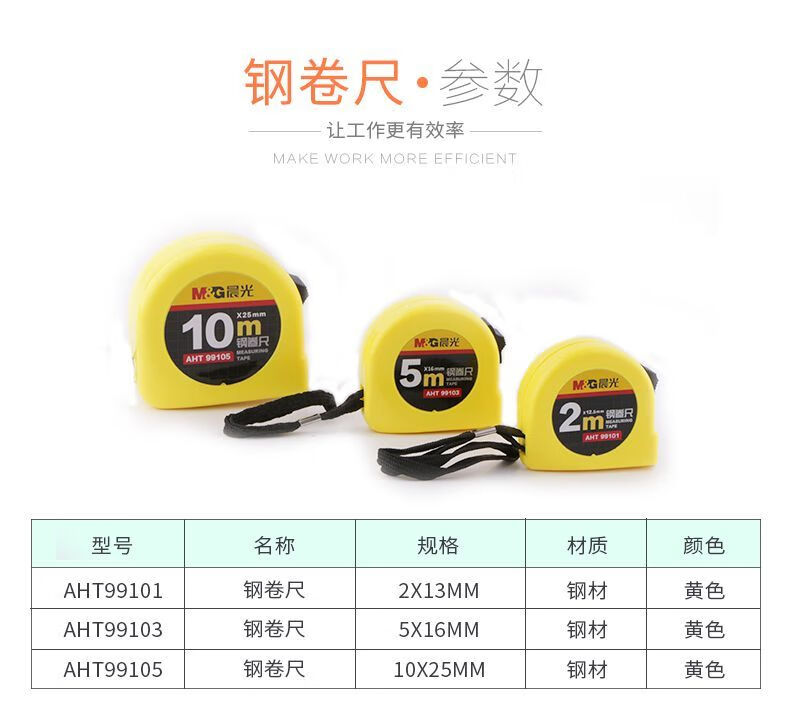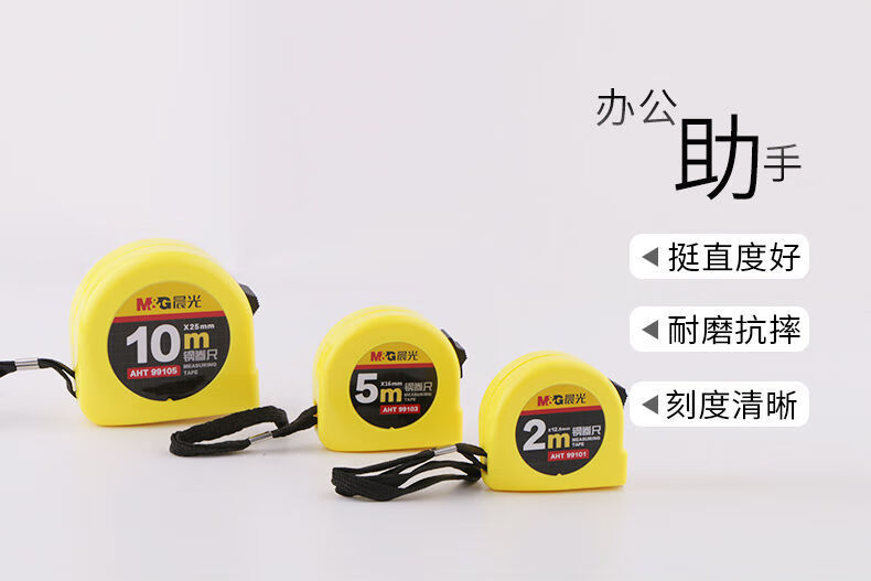 晨光/M&G AHT99105 卷尺 标准钢卷尺耐磨抗摔刻度清晰准确手动锁定可弯曲办公日常测量卷尺 10m