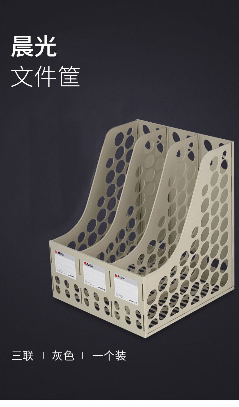 晨光/M&G ADM95081K 文件筐 文具蜂窝形三联文件框 稳固型文件架文件筐 资料整理收纳文件栏 ADM95081 灰色 单个装