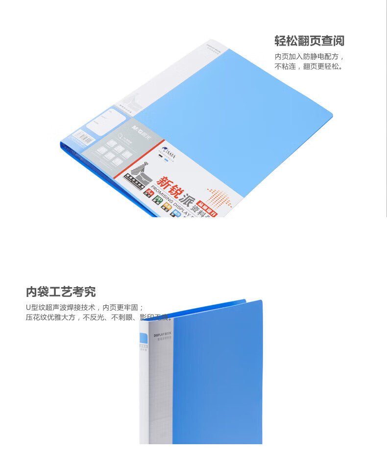 晨光/M&G ADM95095B 文件夹 新锐派资料册收纳册插袋档案塑料文件册多页资料册20页蓝色