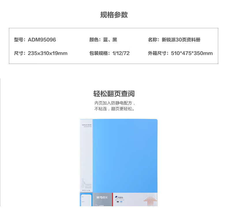 晨光/M&G ADM95096B 文件夹 新锐派资料册收纳册插袋档案塑料文件册多页资料册30页蓝色