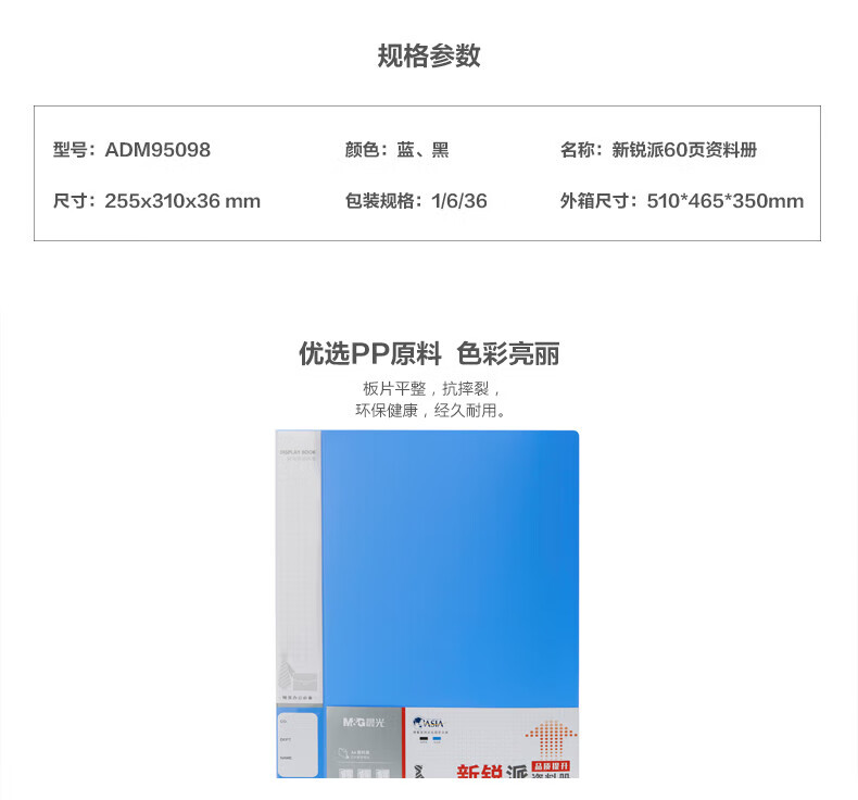 晨光/M&G ADM95098B 文件夹 新锐派60页资料册收纳册插袋档案塑料文件册蓝色