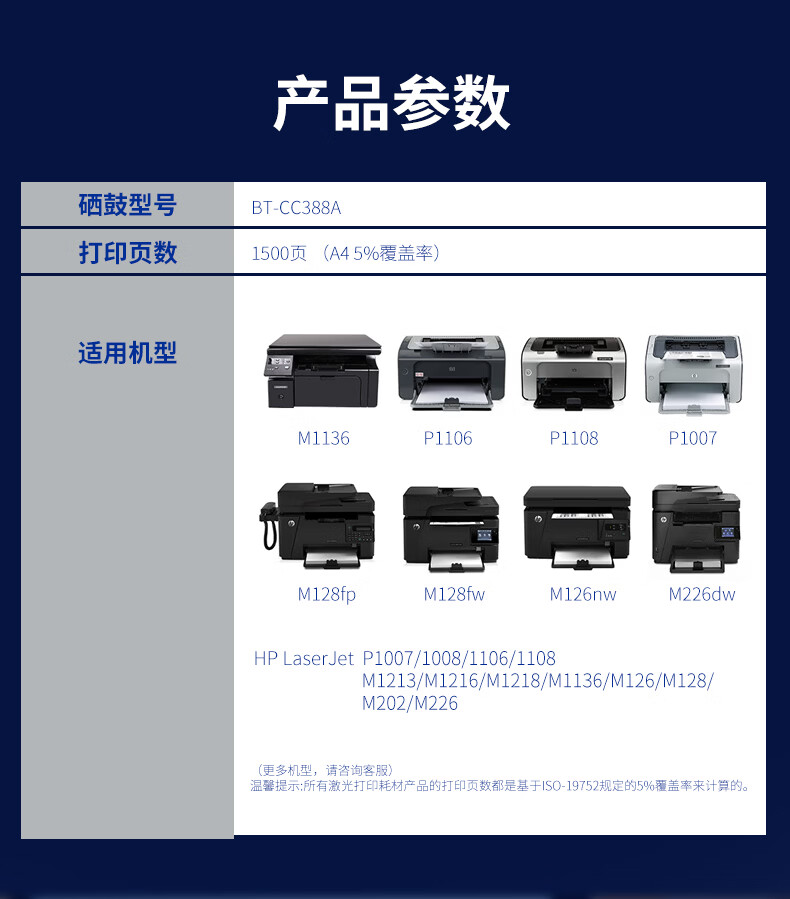 标拓/Biaotop BT-CC388A 硒鼓 适用惠普hp m126a m113/hp1108 m1136m 128fn p1007/1008/1106/打印机