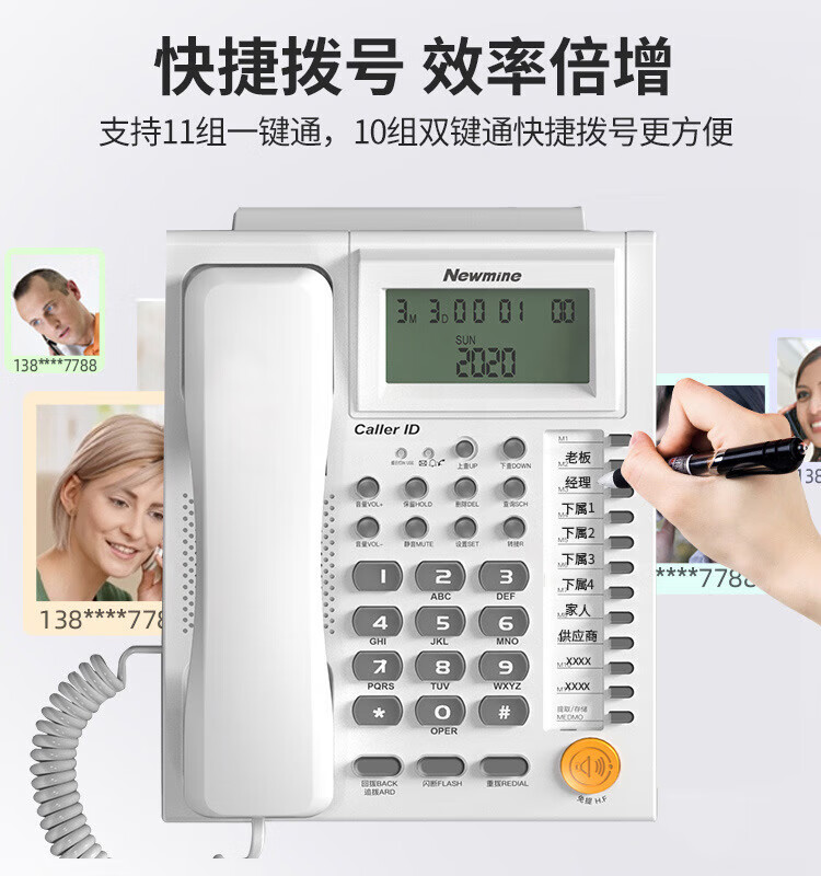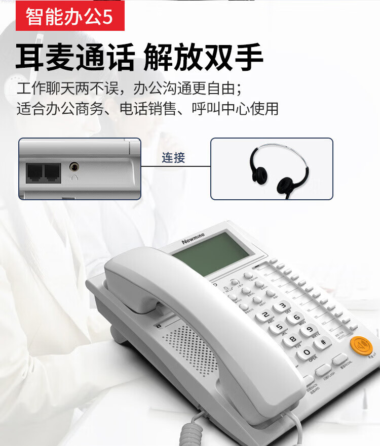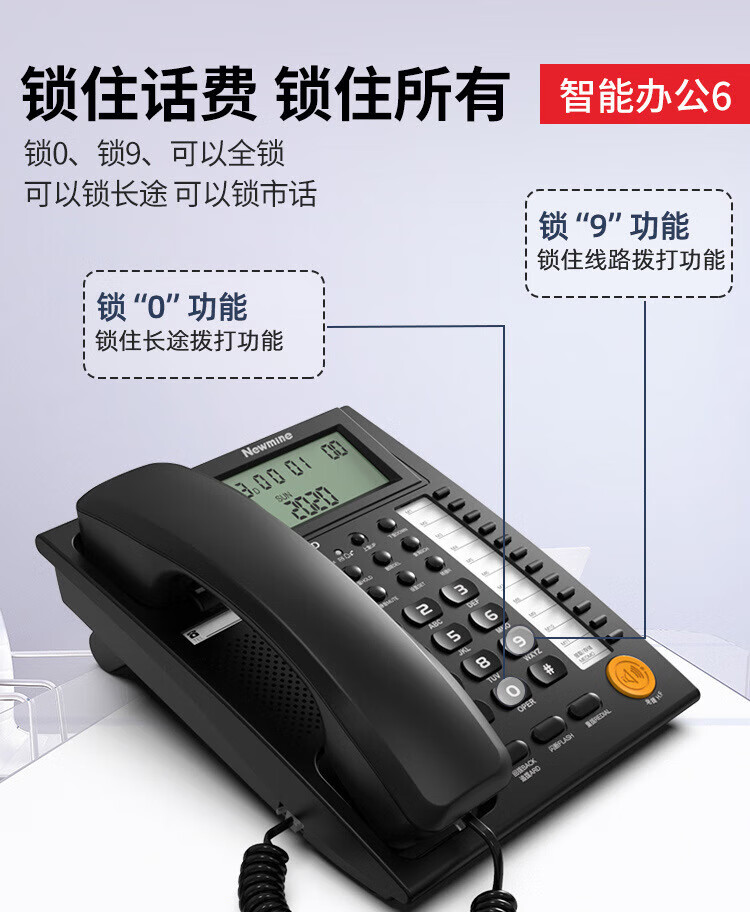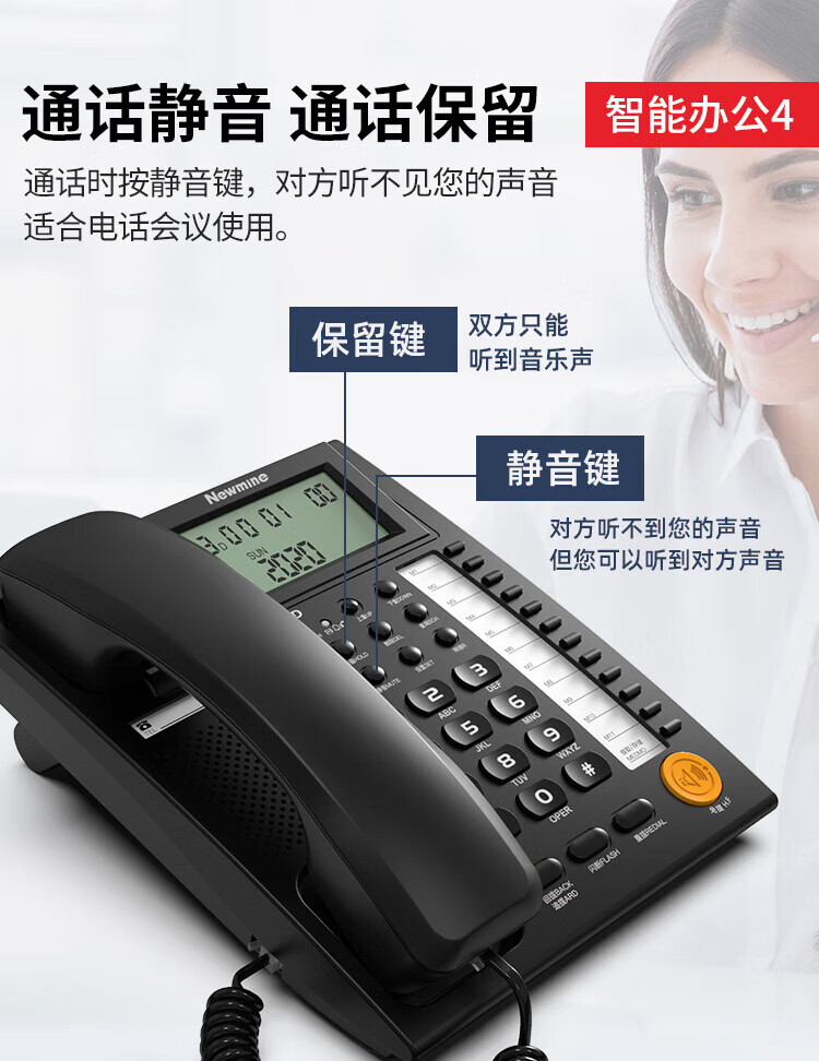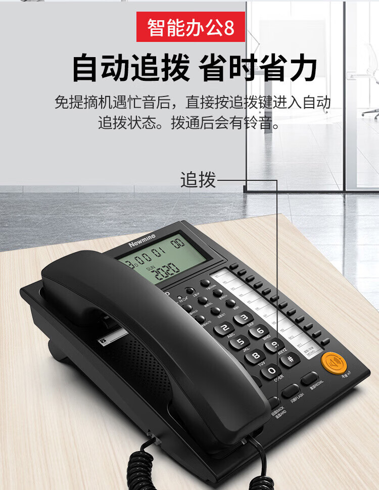 纽曼/Newmine HA1898TSD-818 普通电话机 商务办公电话机 固话 座机 超清免提自动收线静音 耳机通话 【智能办公电话机】黑色