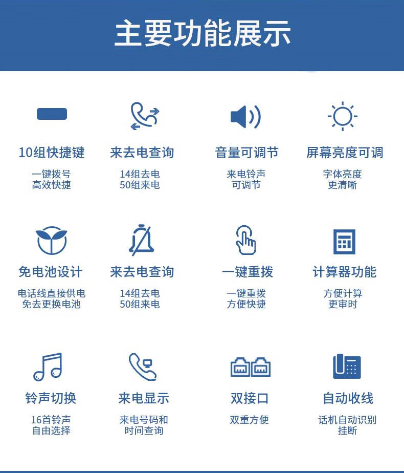 包装清单  :   电话机*1、曲线*1、电话线*1、支架*1