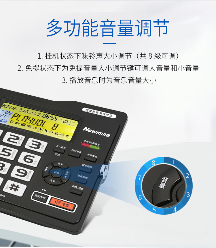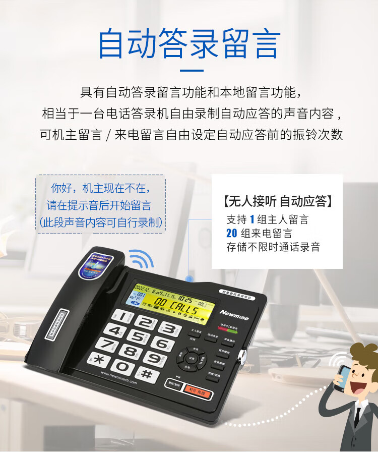 纽曼/Newmine HL2008TSD-528(R) 普通电话机 录音电话机座机 固定电话 办公 录音可扩充 录音管理系统 黑色