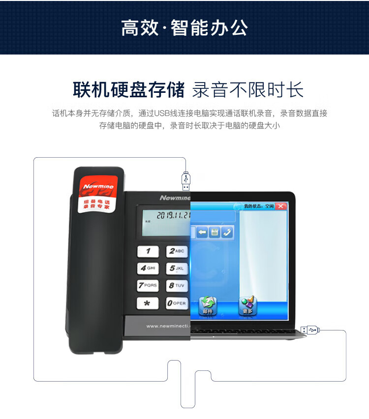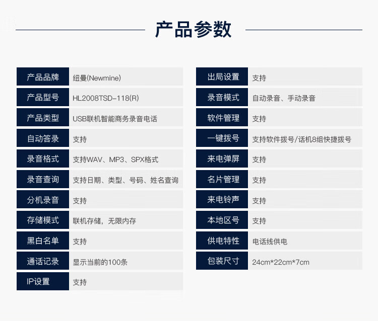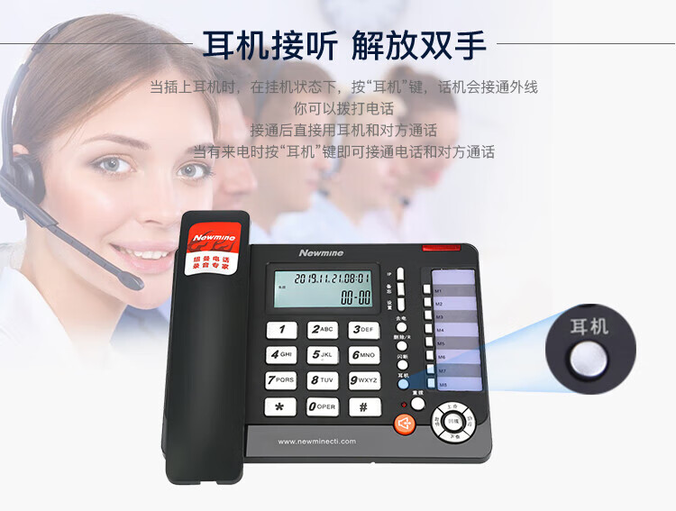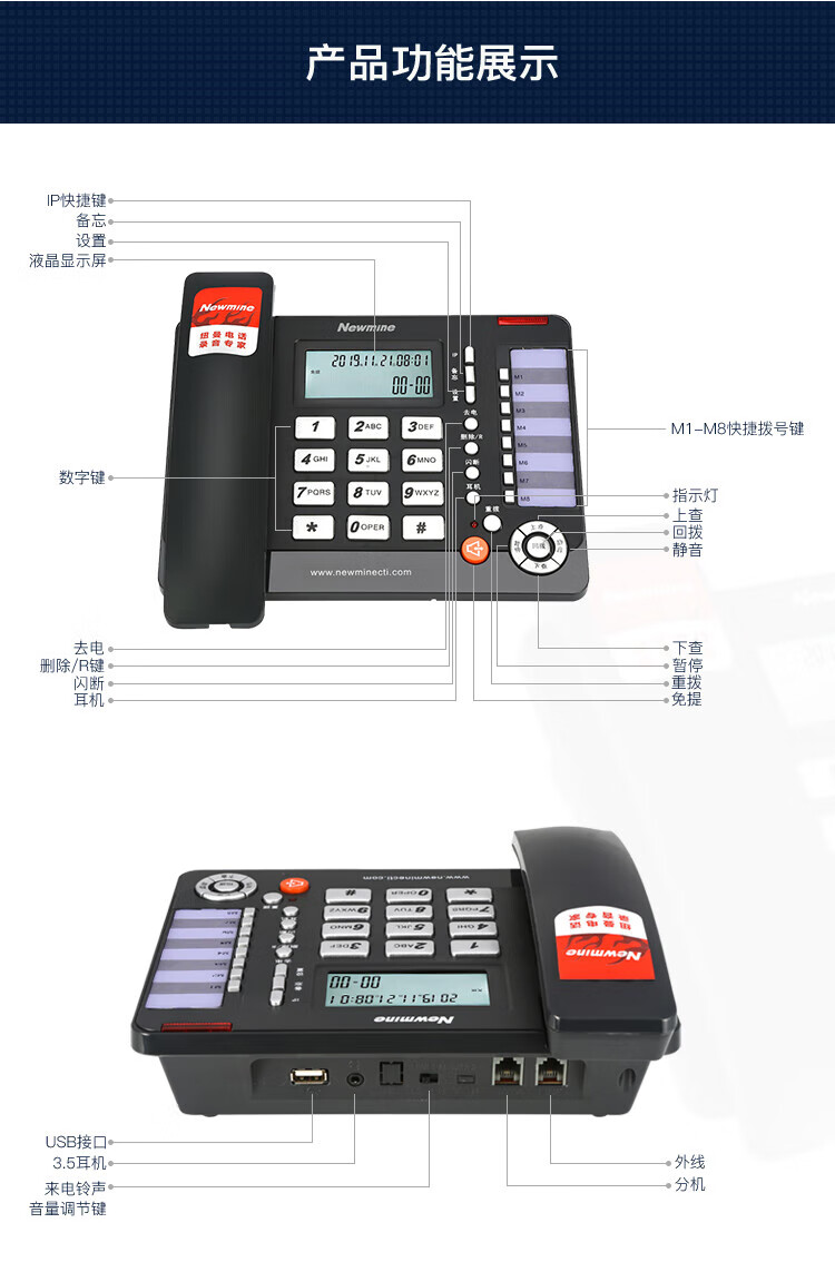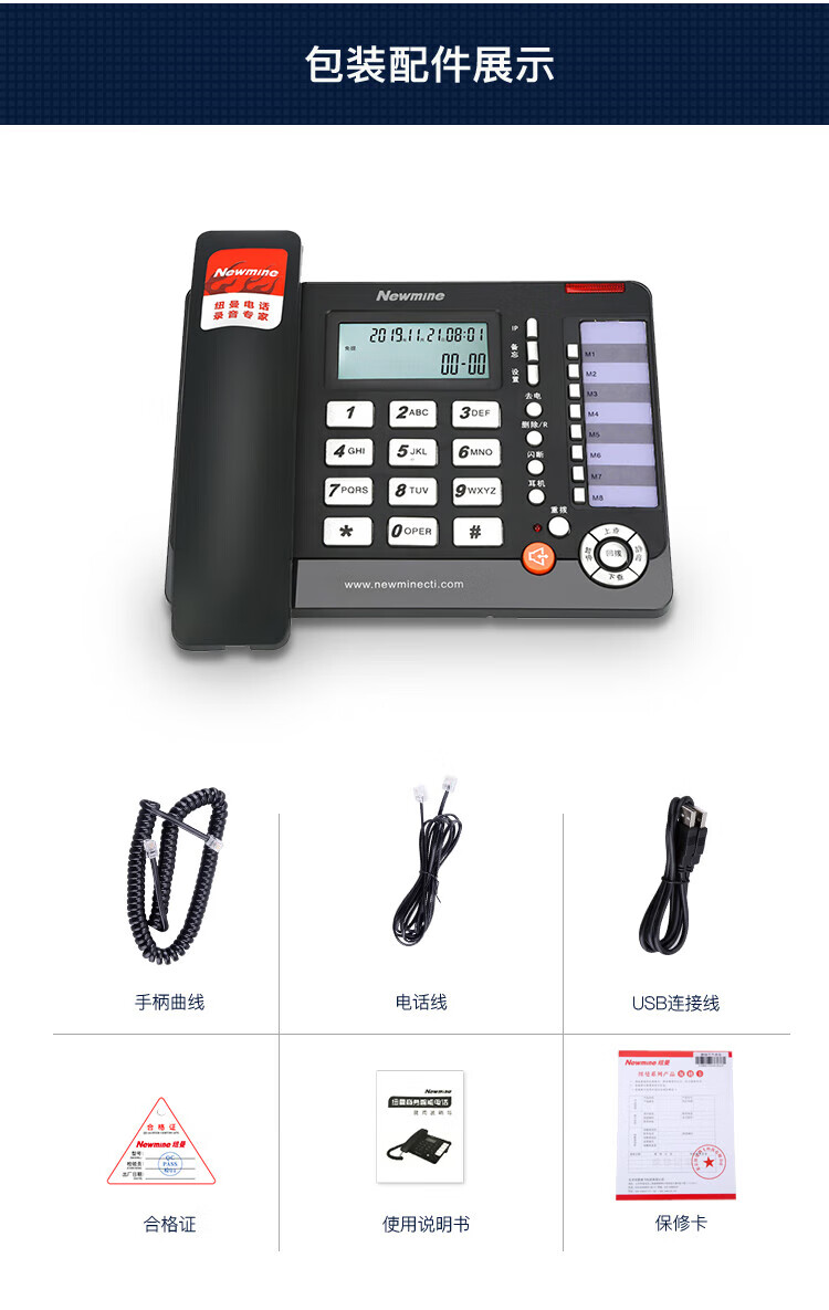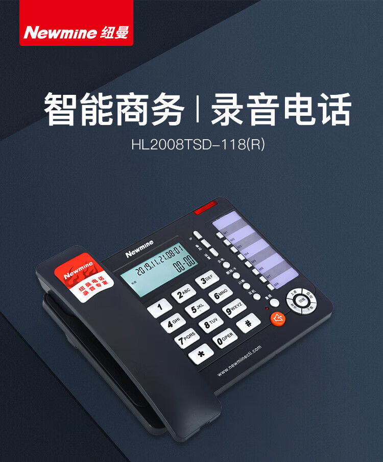纽曼/Newmine HL2008TSD-118(R) 普通电话机 联机录音电话机 录音会议系统座机 支持企业购对公 黑色