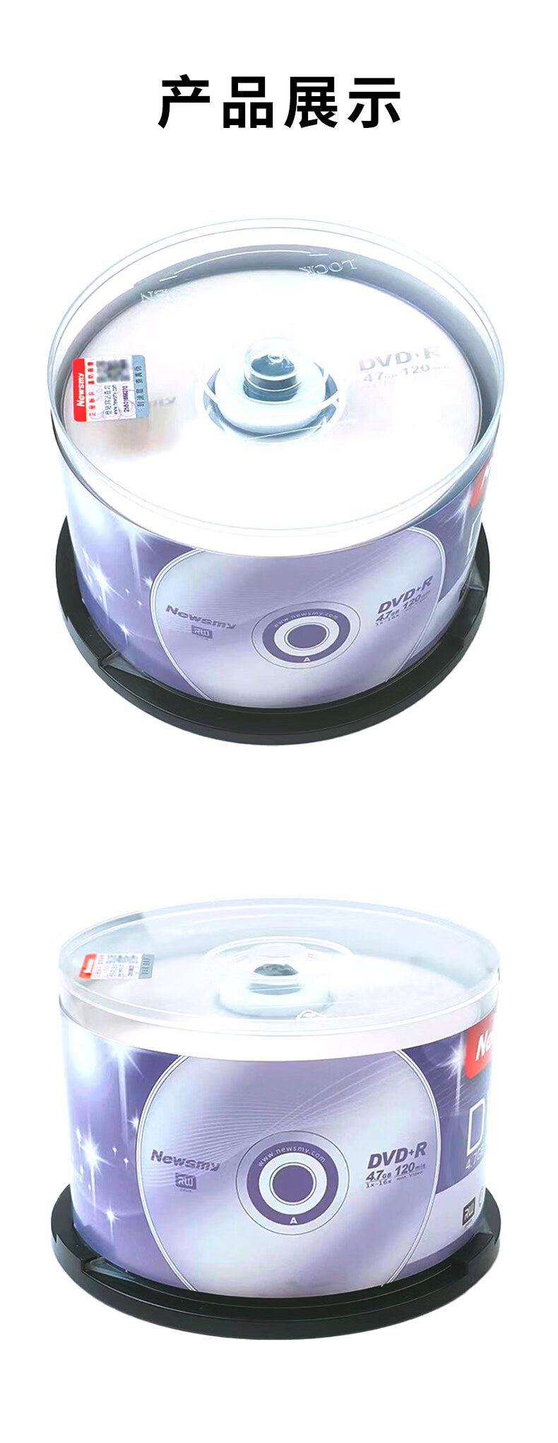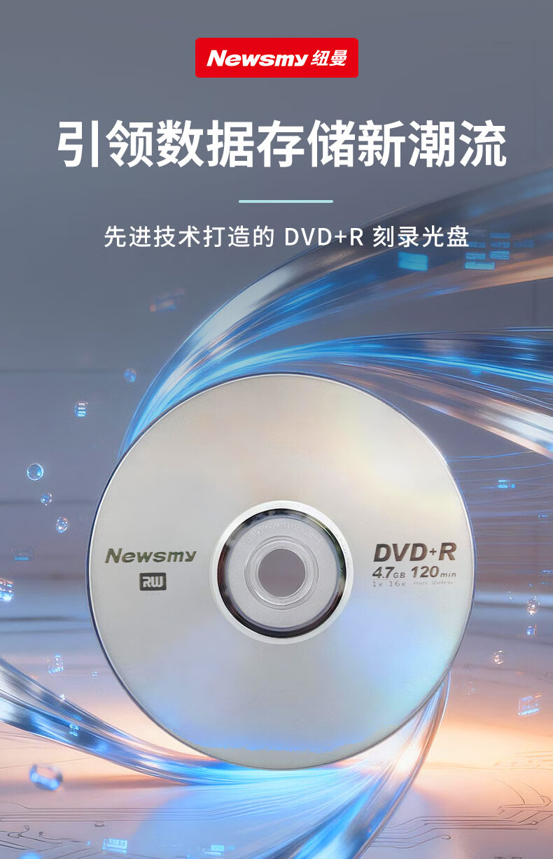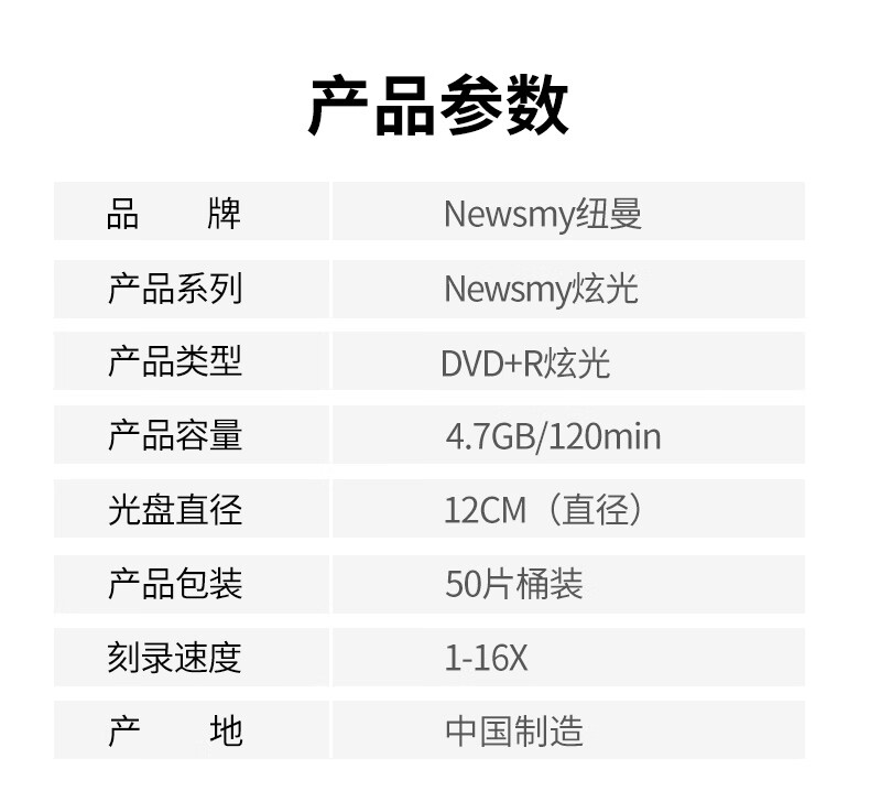 纽曼/Newsmy DVD+R 光盘 炫光系列DVD+R 光盘/刻录盘 16速4.7GB 空白光盘 桶装50片