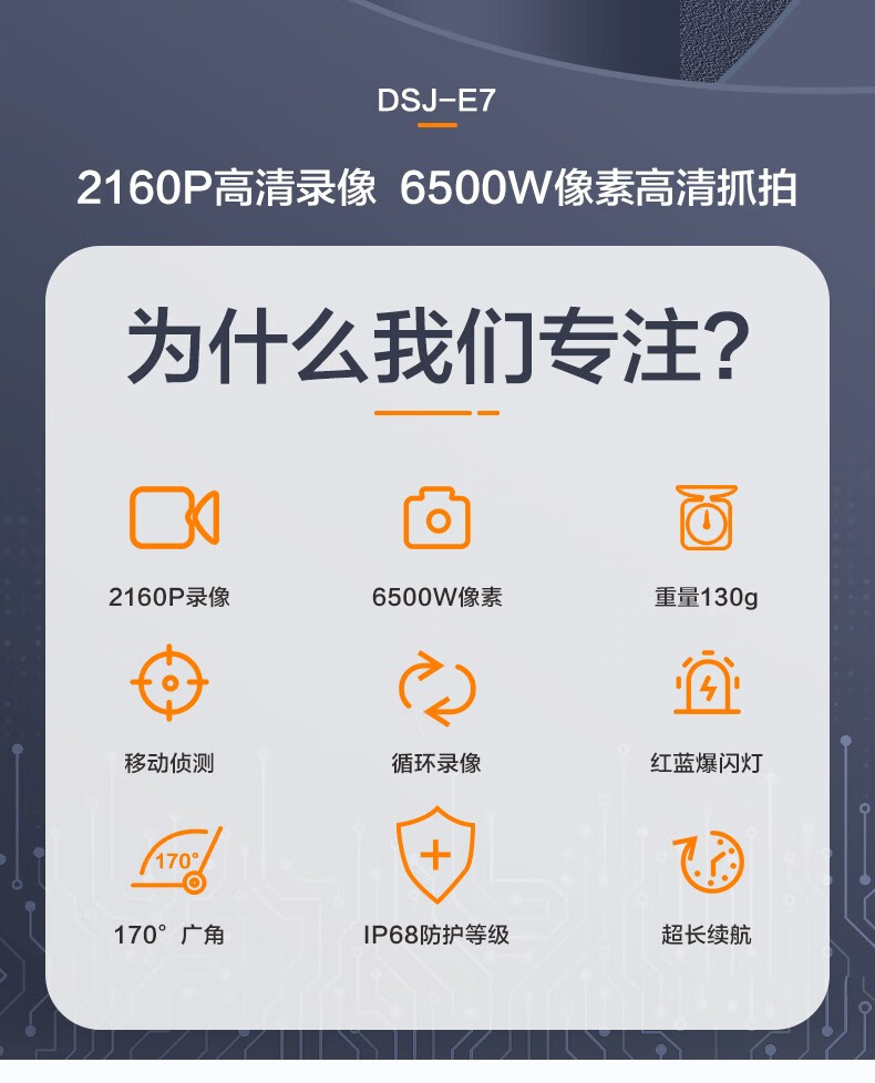 警蓝伟业 DSJ-E7 通用无线电通信设备 执法记录仪 2160P高清红外夜视红蓝爆闪 6500万像素连续录像12小时 DSJ-E7 128G