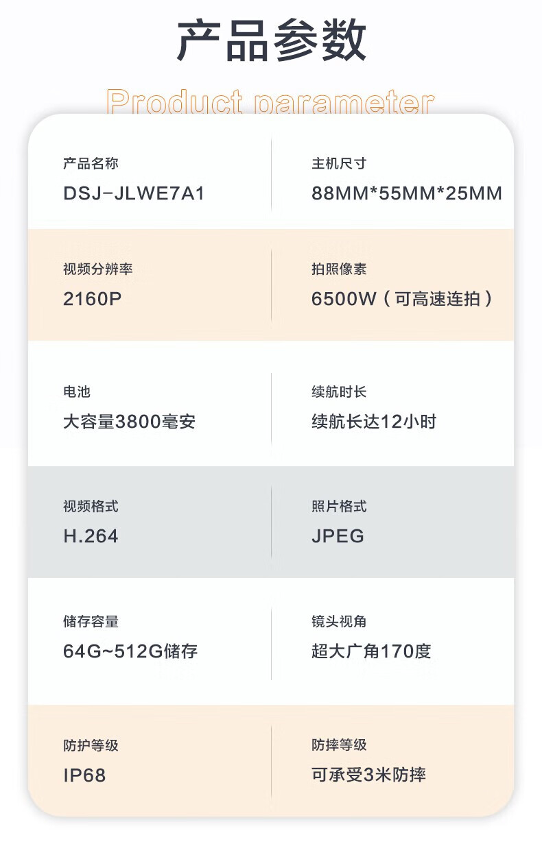警蓝伟业 DSJ-E7 通用无线电通信设备 执法记录仪 2160P高清红外夜视红蓝爆闪 6500万像素连续录像12小时 DSJ-E7 512G