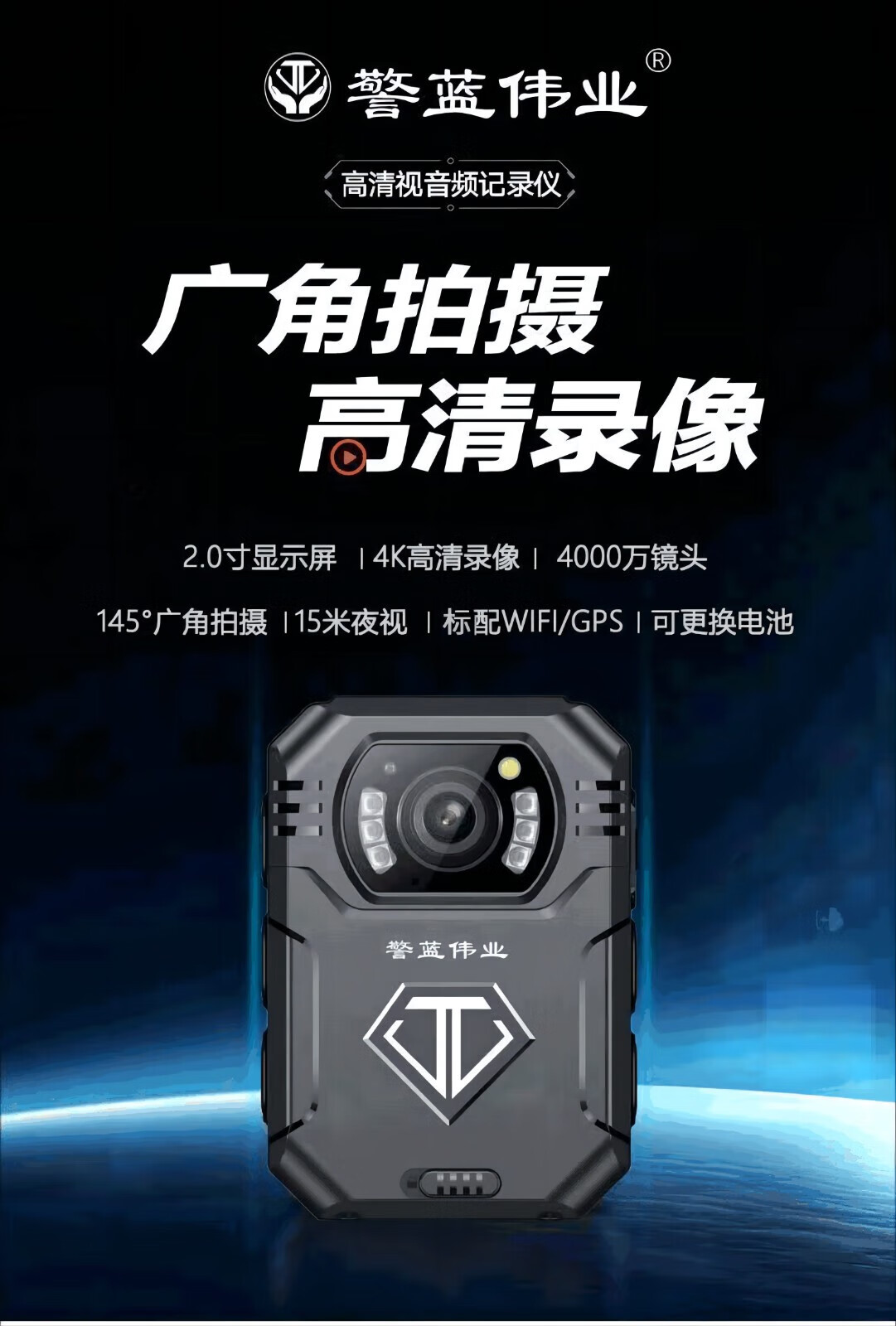 产品材质  :   执法记录仪 WiFi+GPS版 256G