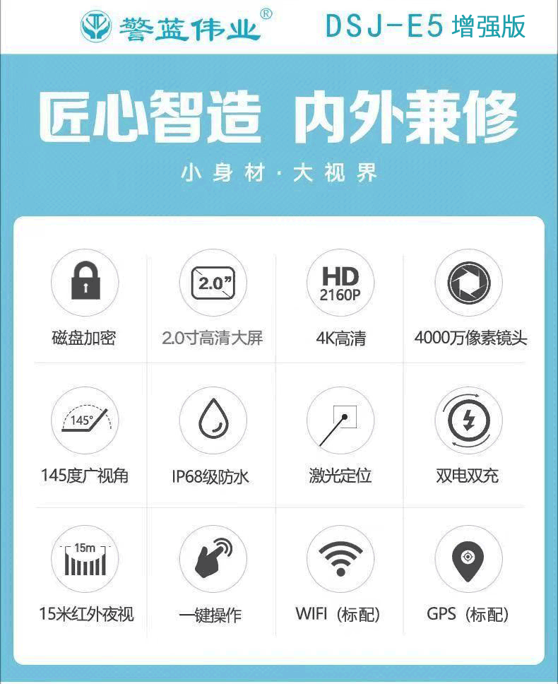 警蓝伟业 DSJ-E5 通用无线电通信设备 执法记录仪 2K高清红外夜视轨迹定位便携执法仪 GPS版 DSJ-E5 256G