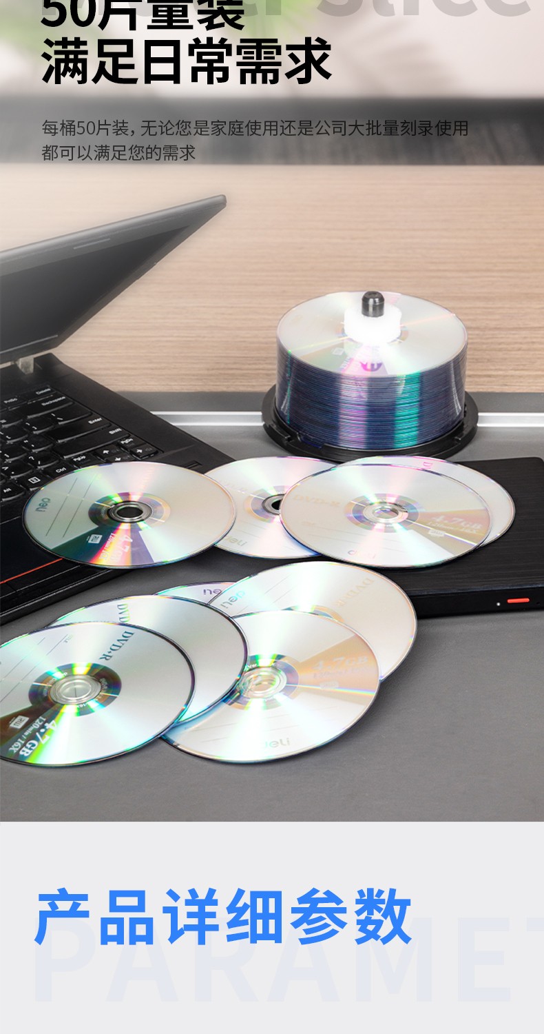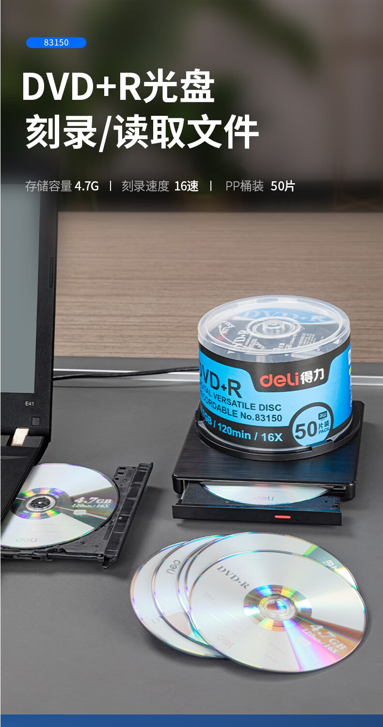 得力/deli 83150 光盘 DVD+R 光盘\/刻录盘 16速4.7GB 办公系列 空白光盘 50片/桶